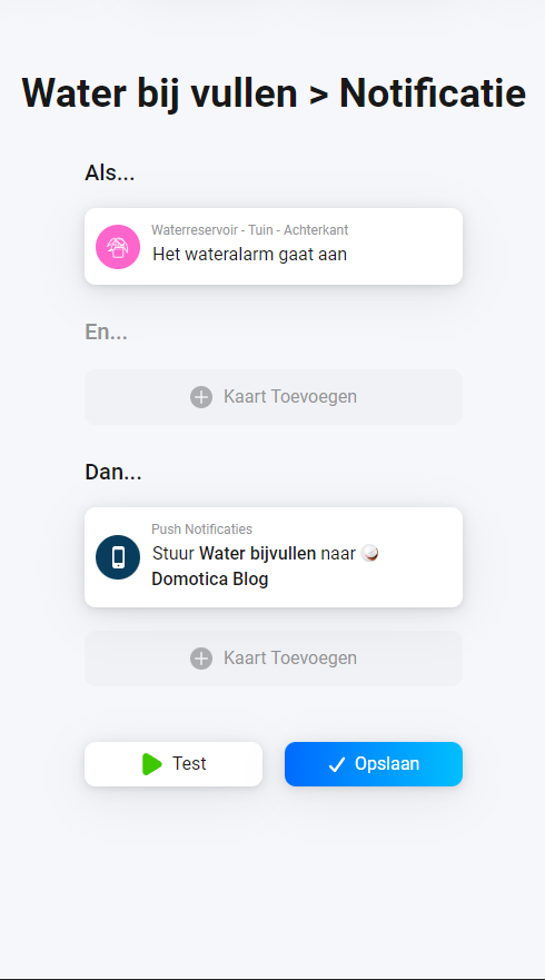 The water pump is already connected to the Homey, so it can be turned on or off remotely. So now only a solution for the water level.