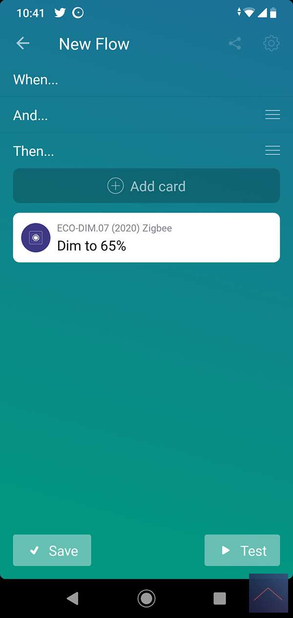 I would like the Eco-DIM to be turned on when the sun goes down. You can arrange this with the date and time trigger and of course switch on the lamp.