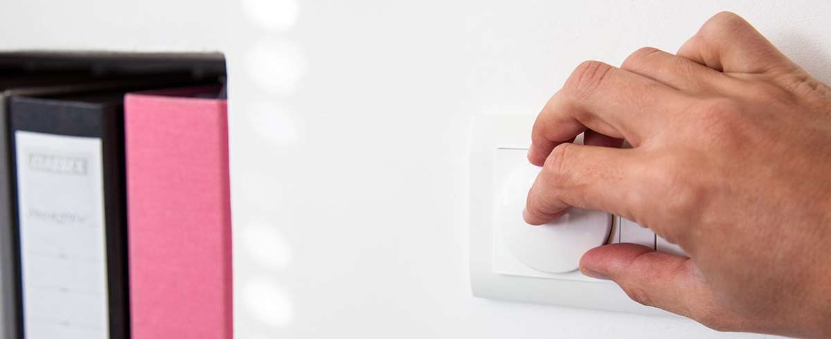 The dimmer replaces your existing wall switch and you build it here at the back. This makes it invisible and you can also operate it simply via a wall switch. The Eco-DIM supports different switching material, so you can seamlessly connect it to your other switching material.