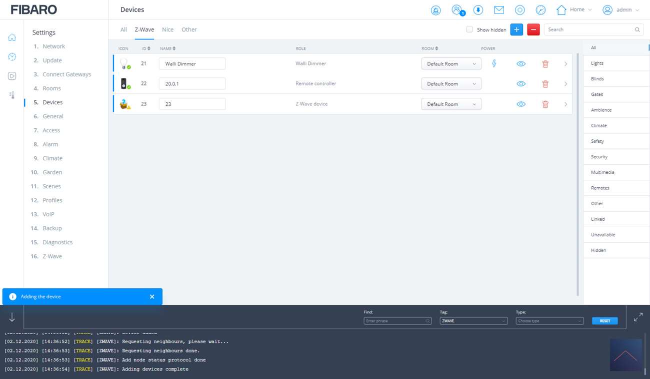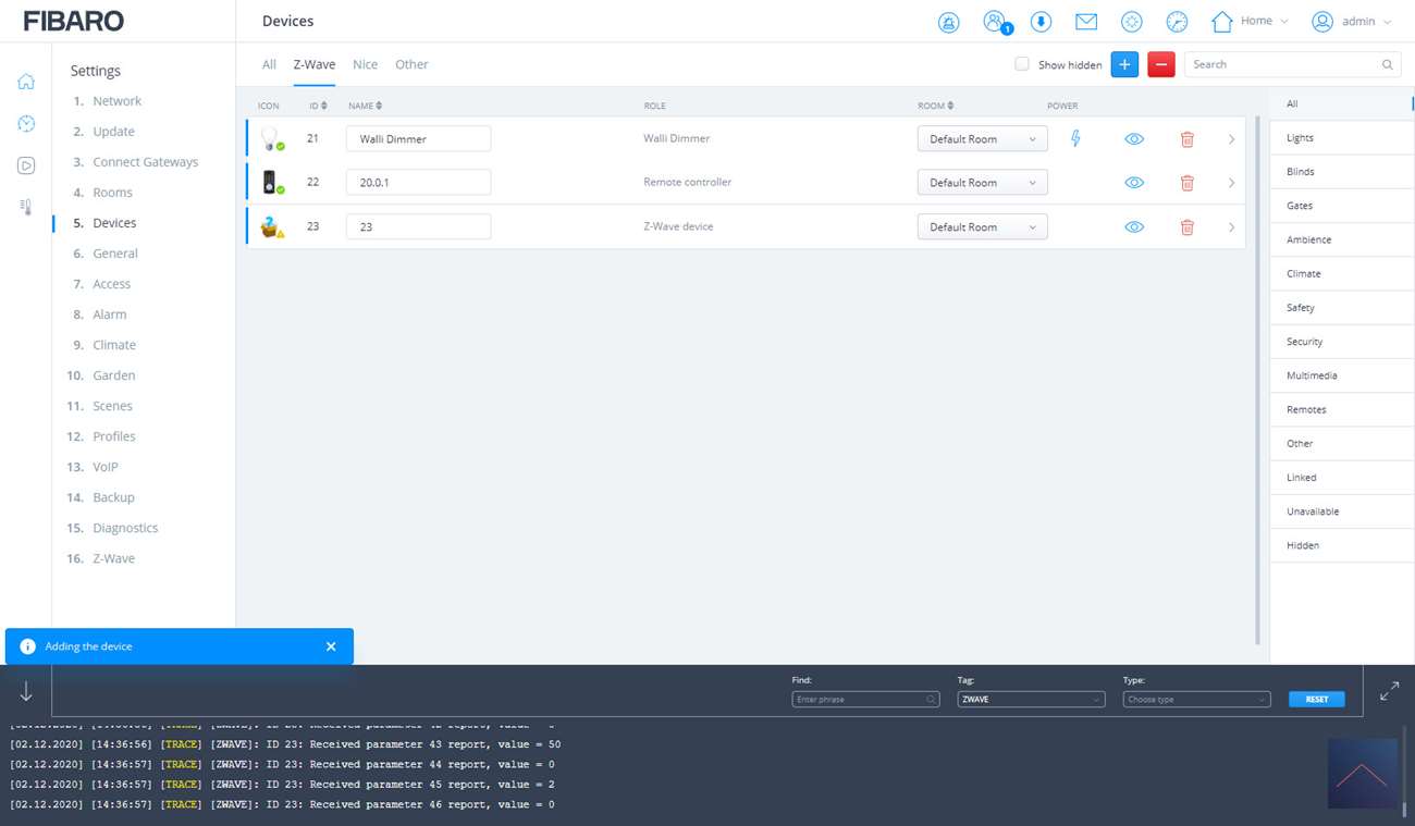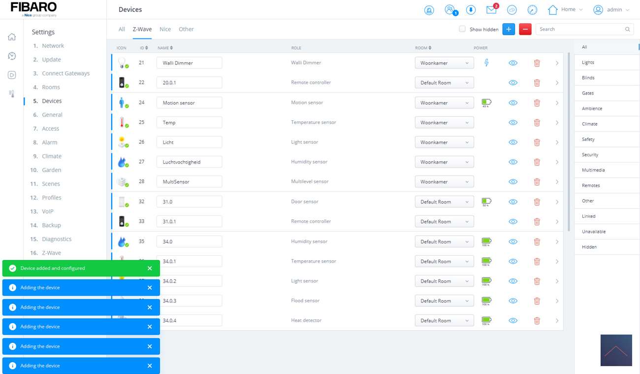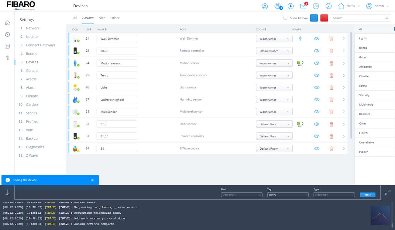 We are going to add several devices to see how this is done and whether it works at all. In addition to a Fibaro product, we also add a few other brands.