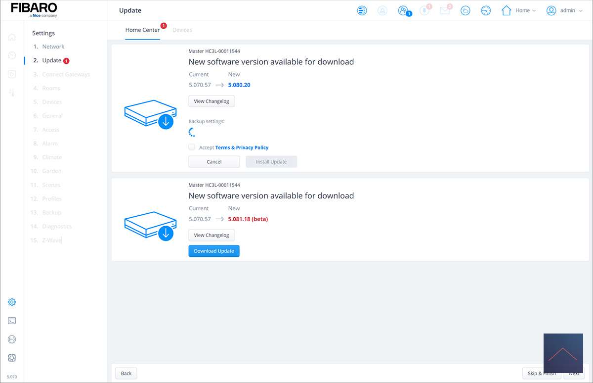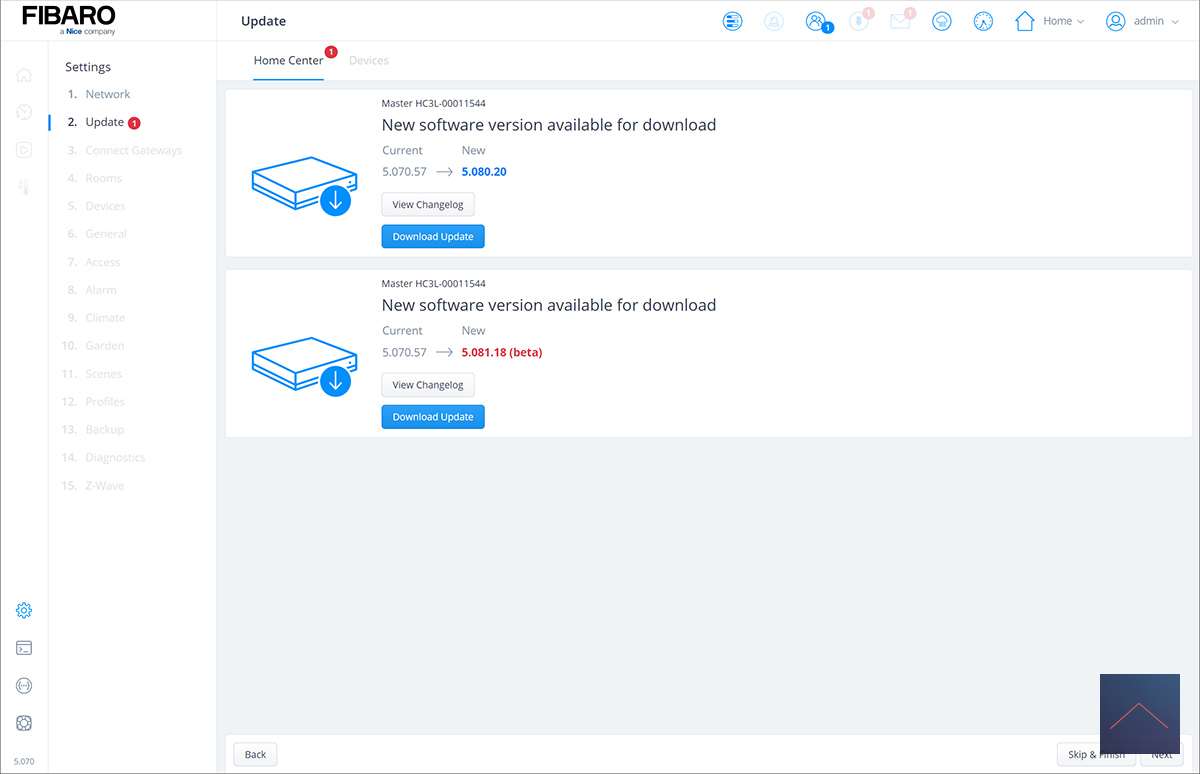 Part of the update is that the HC3 Lite will check for updates for your devices, which I personally find a bit odd as I haven't paired any device with this controller yet.