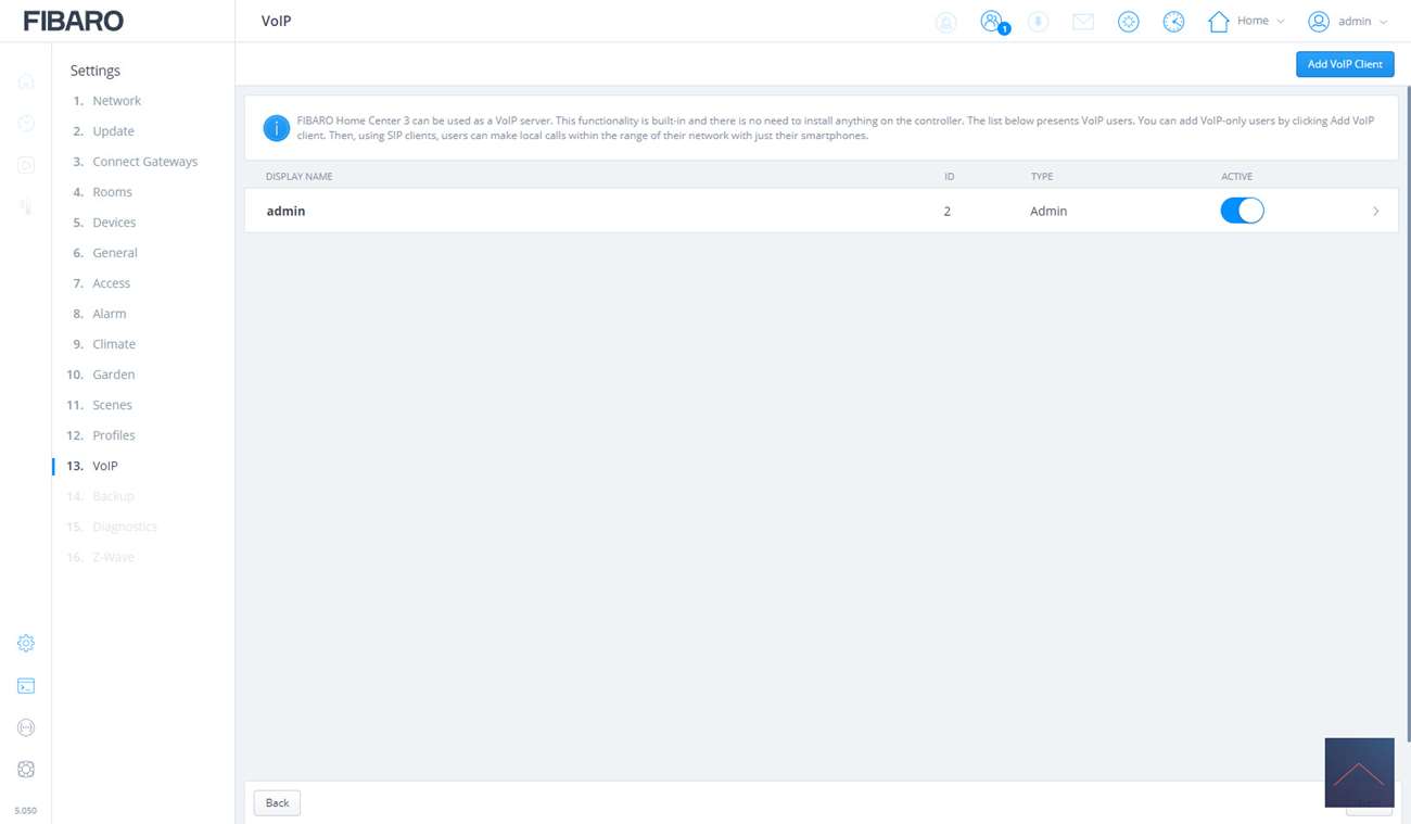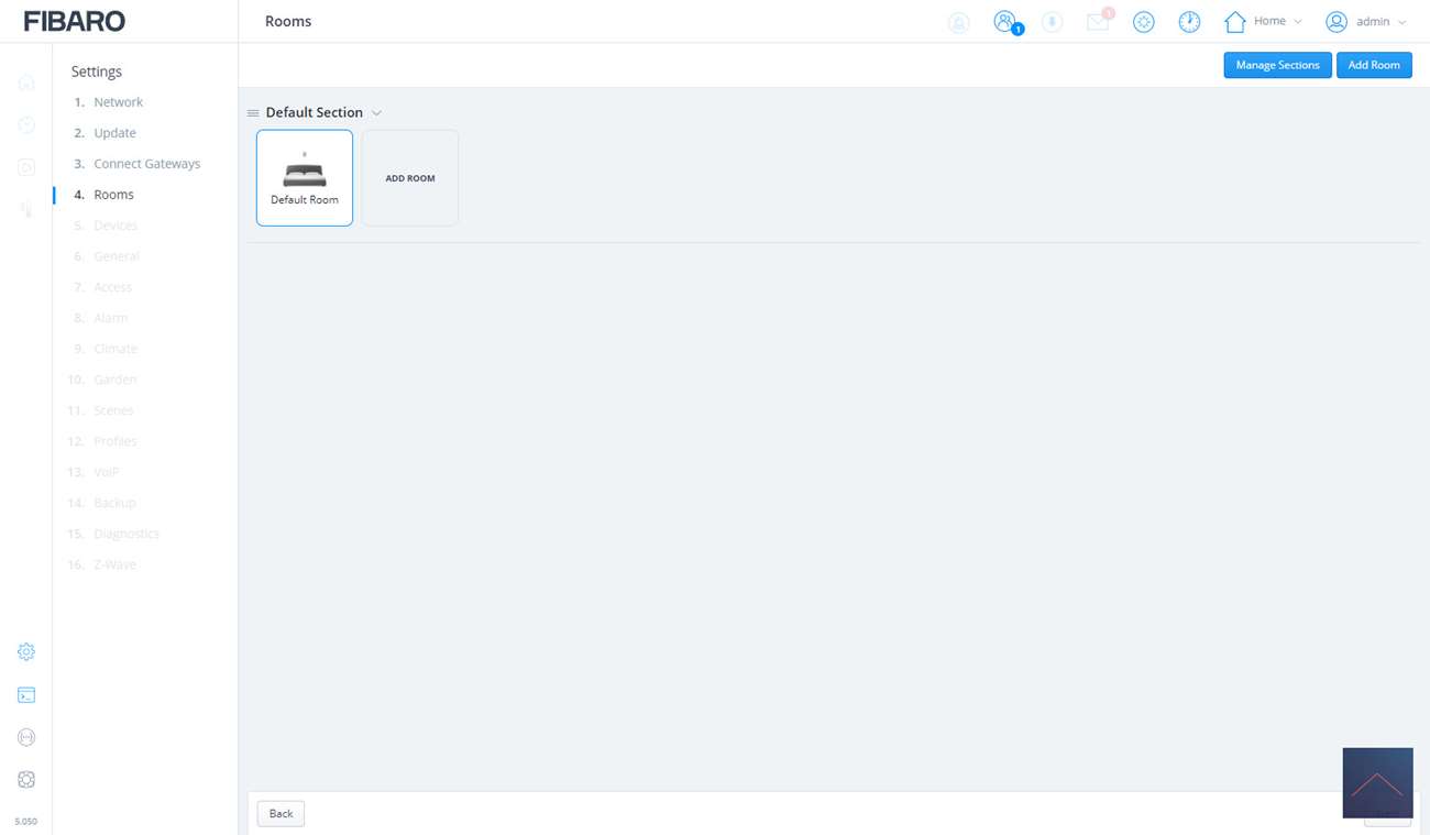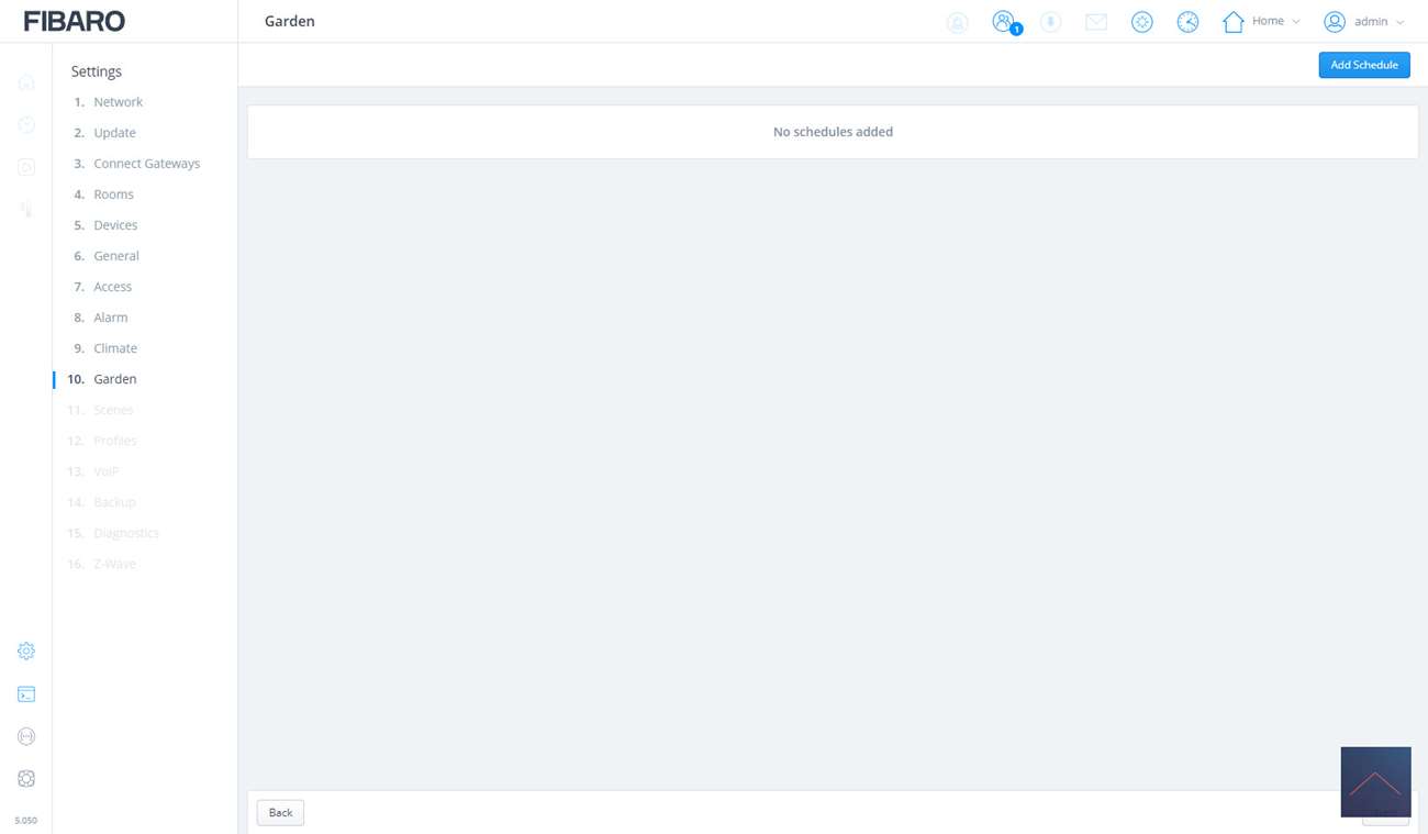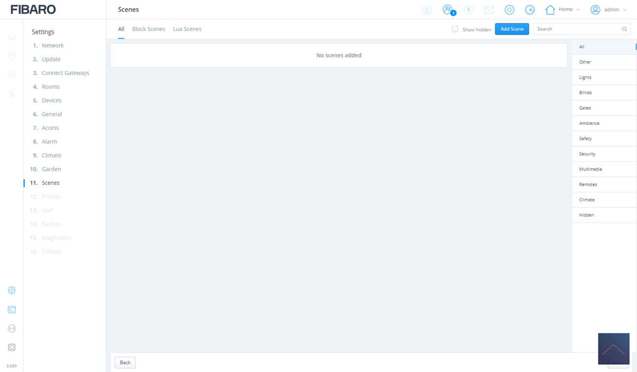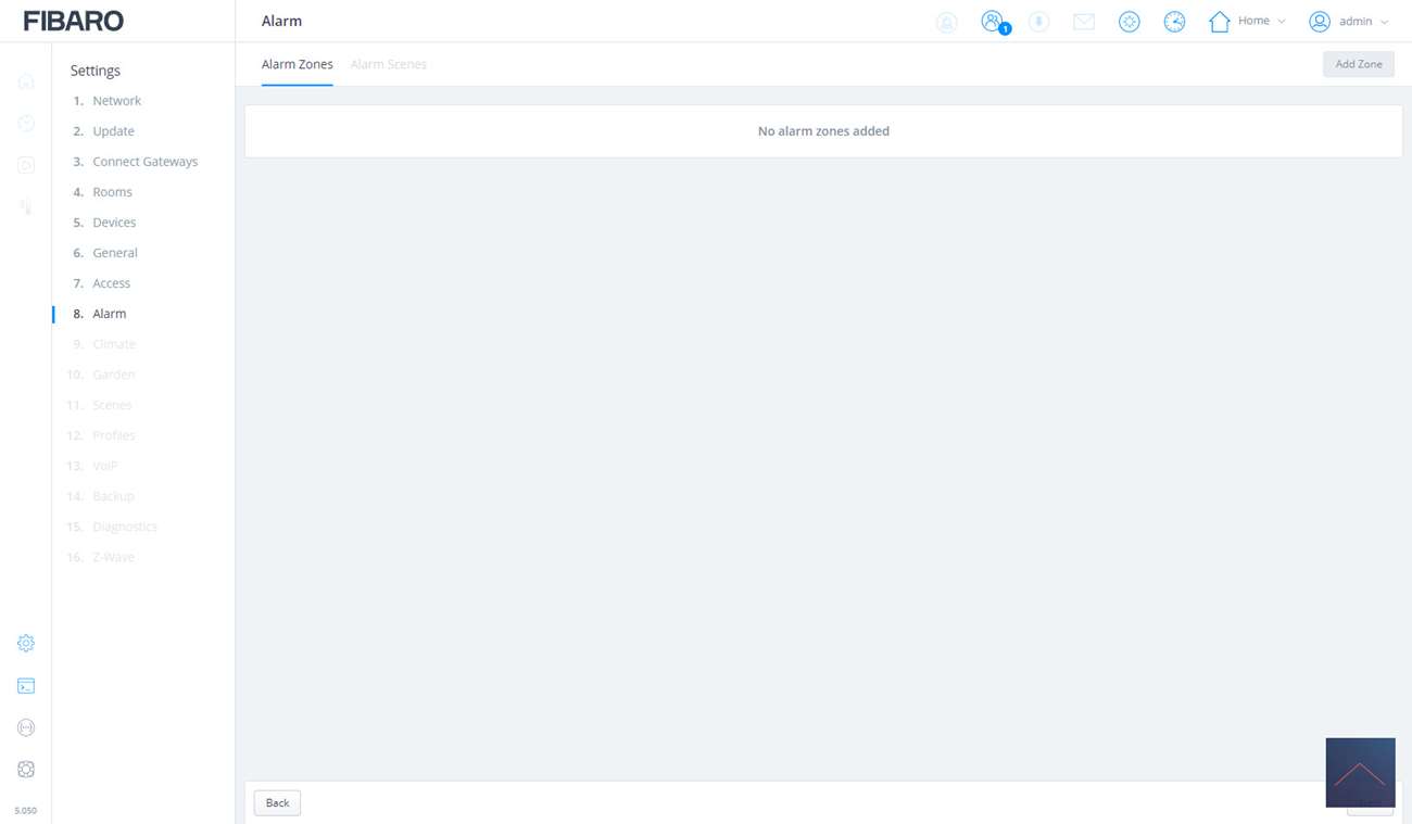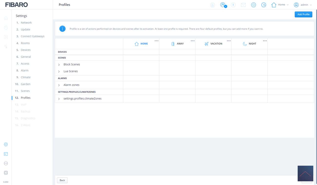 We will skip the next 5 parts (alarm, climate, garden, scenes and profiles) and we will come back to that later.