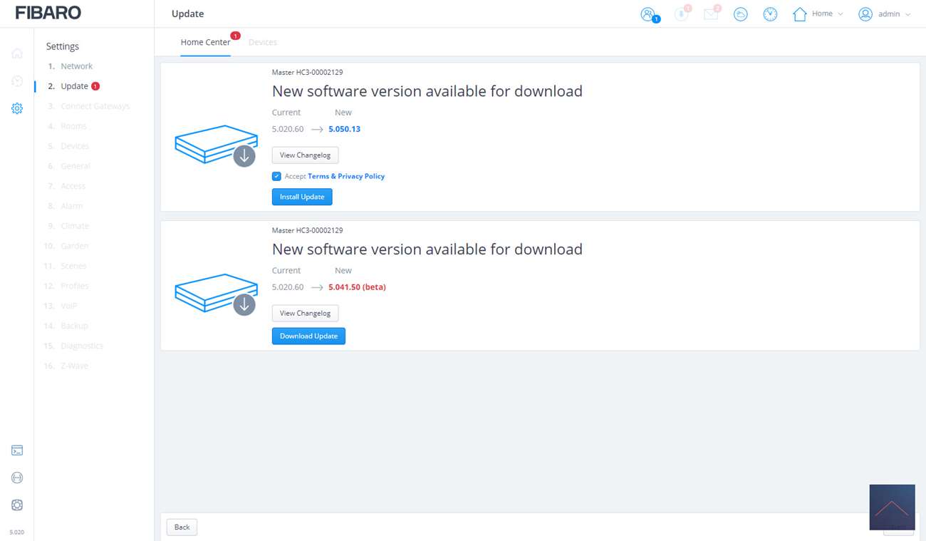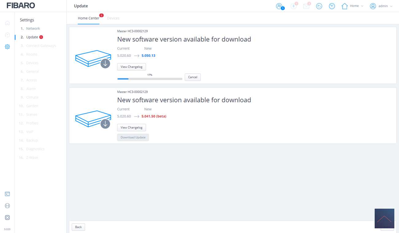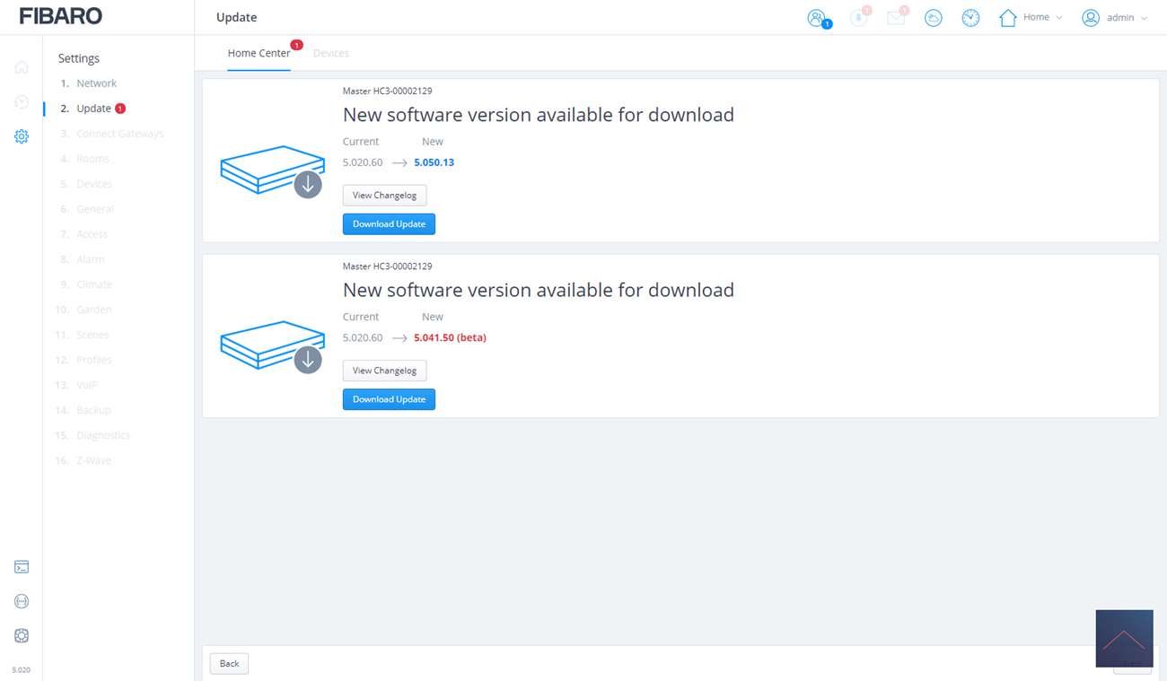 The next step is that an update is available. Fibaro also has beta firmwares available. These are offered for testing. So keep in mind that certain things can no longer work.