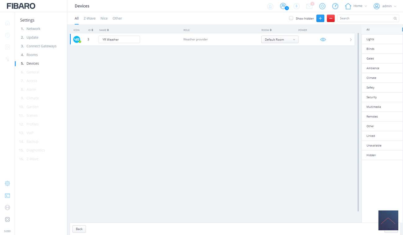 A weather station is already installed for you by default. We will skip this part for a moment because we will discuss this in a separate chapter.