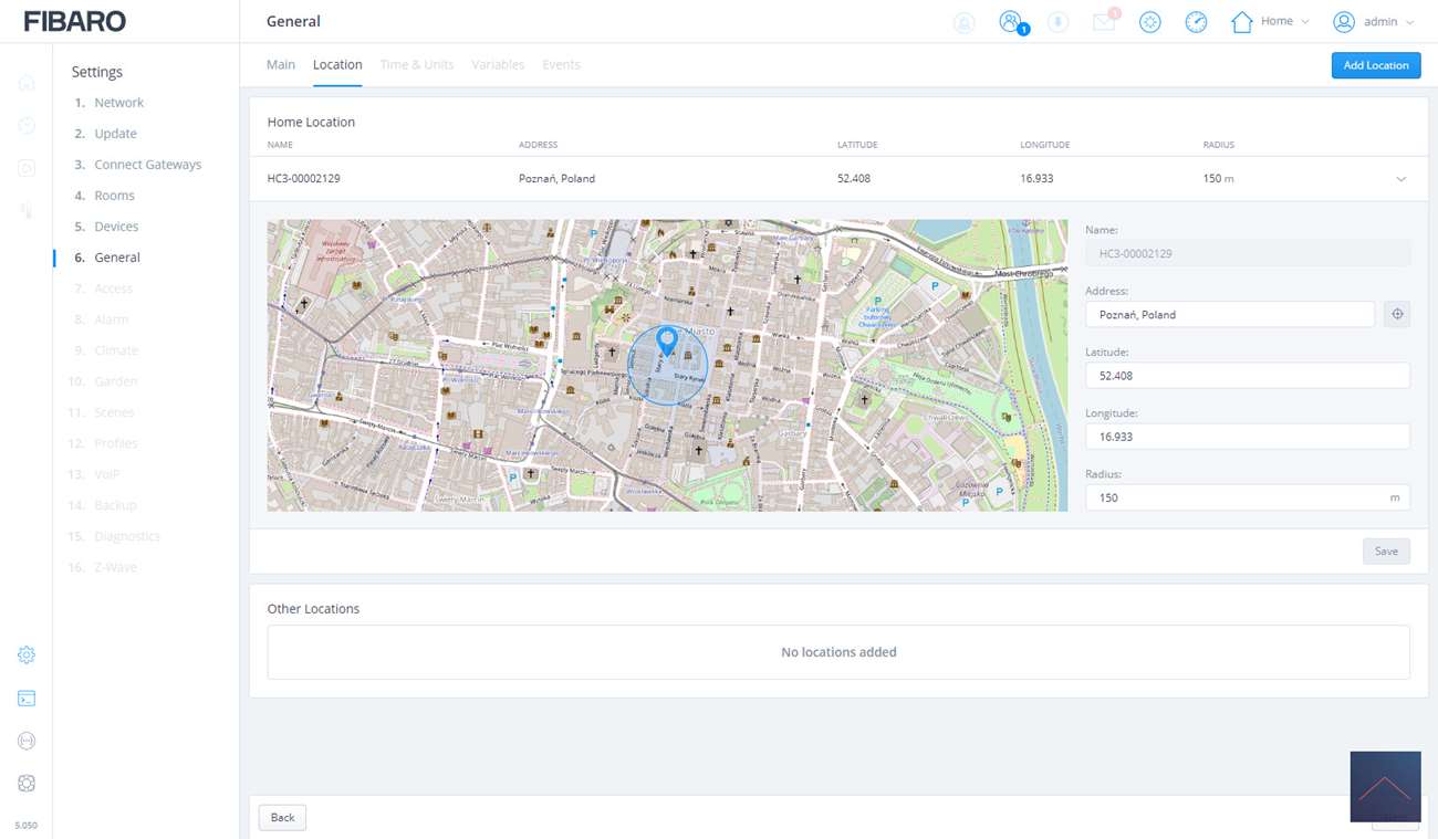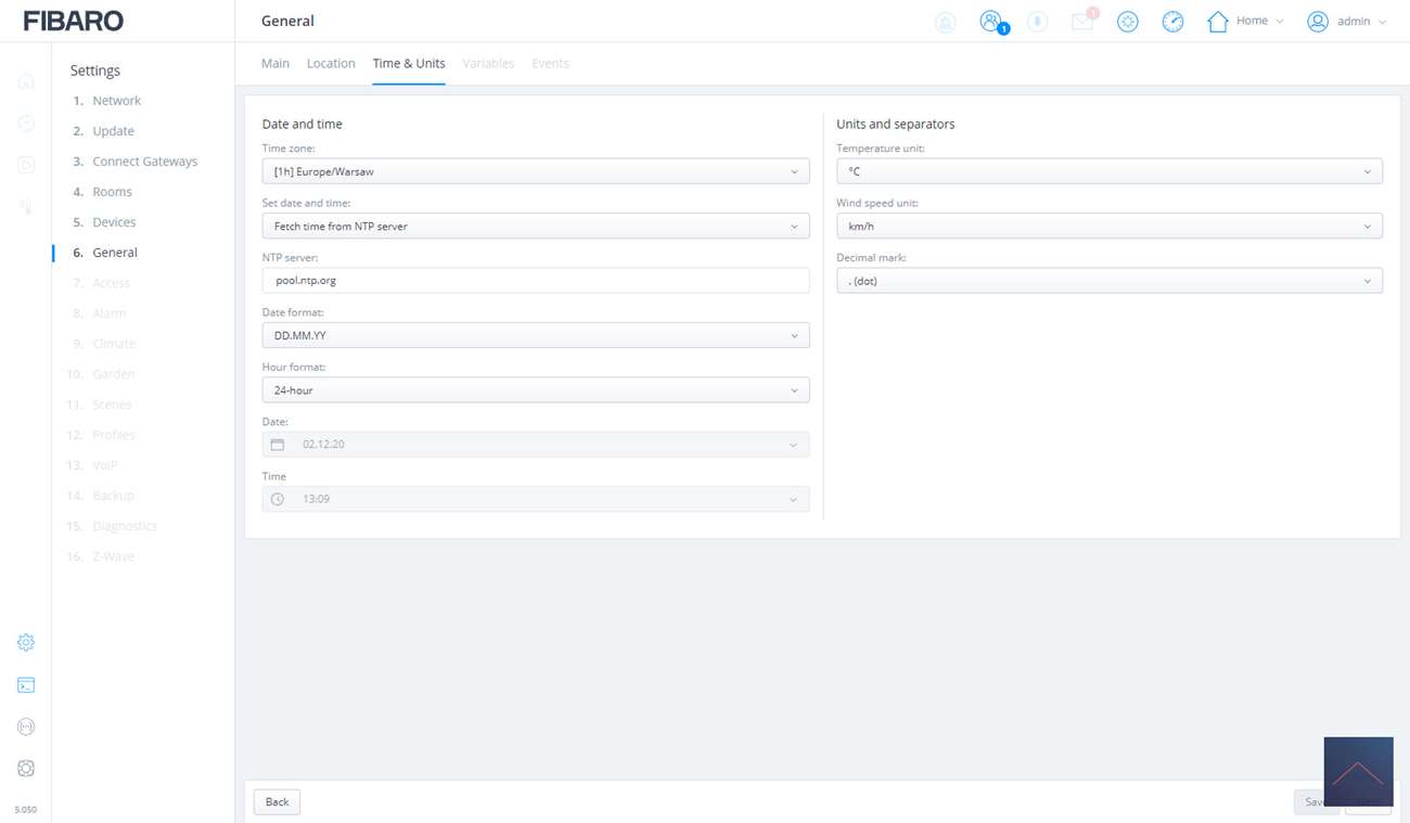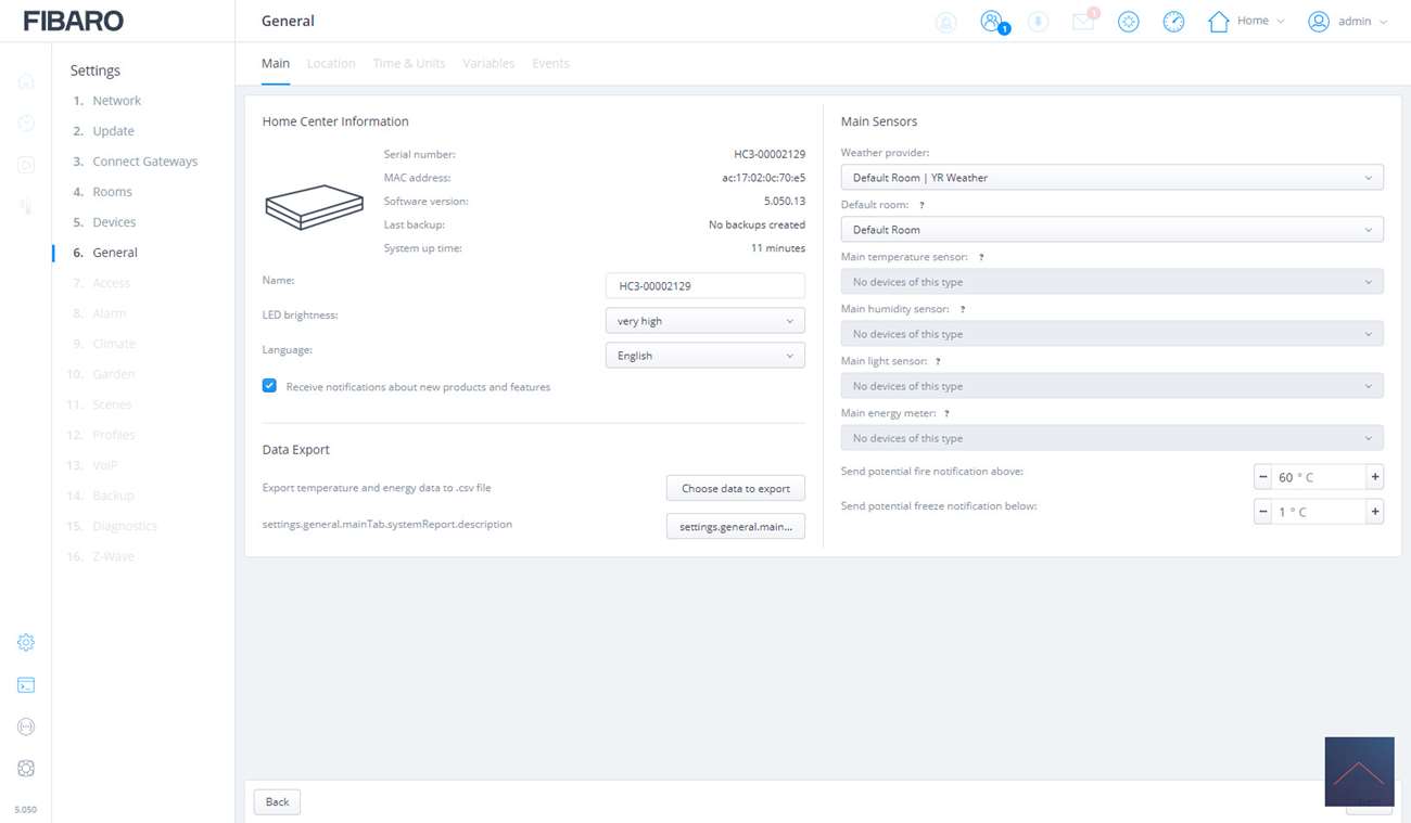 We now come to the general part. Here you can indicate, among other things, what your main devices are, what the location of the HC3 is, what units and time should be used.