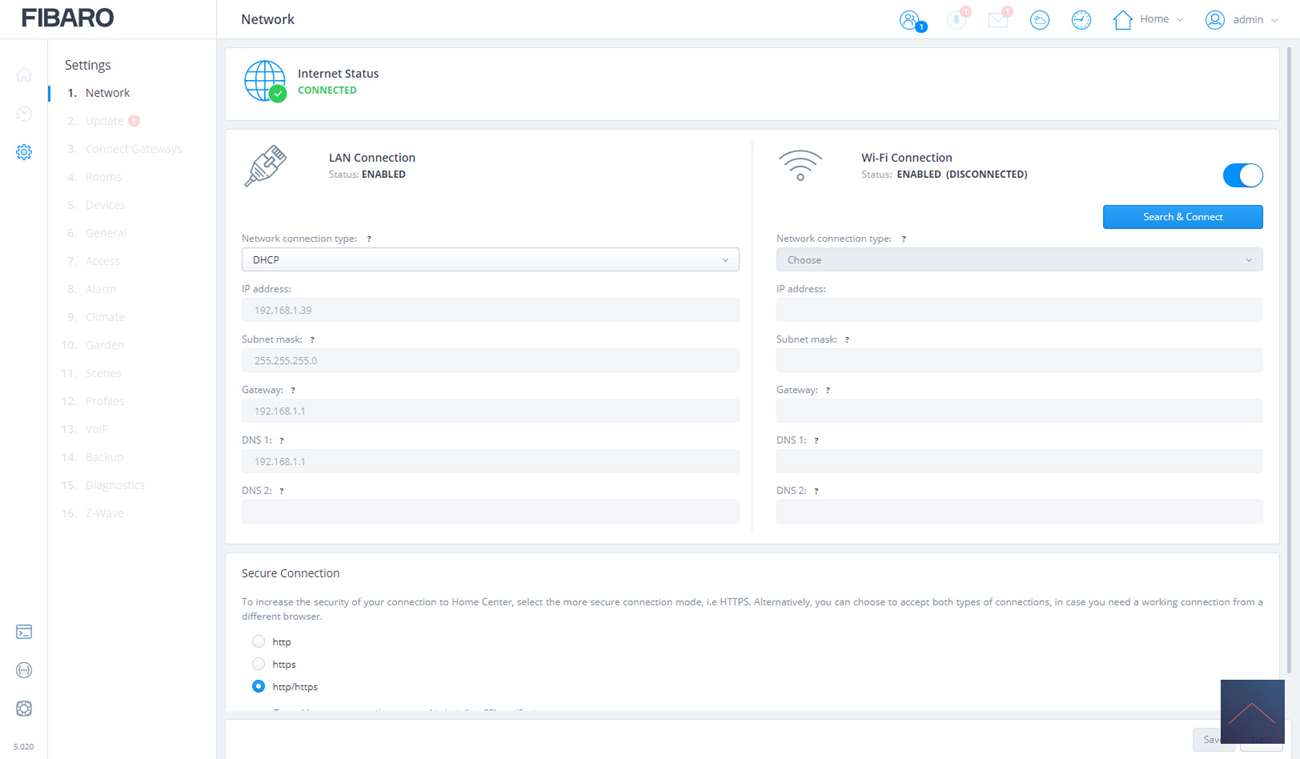 Now that we are logged in and have paired the HC3, the first step is to check if your network settings are correct. Here you can also configure the WiFi.