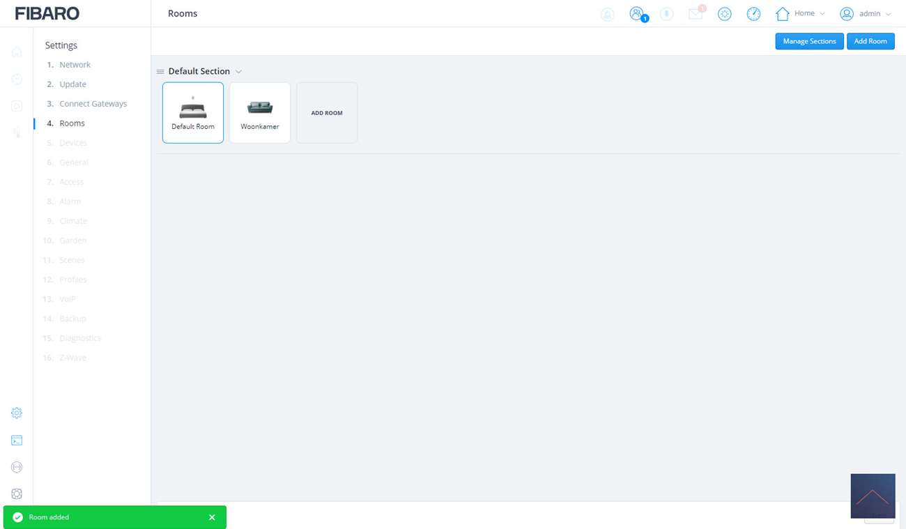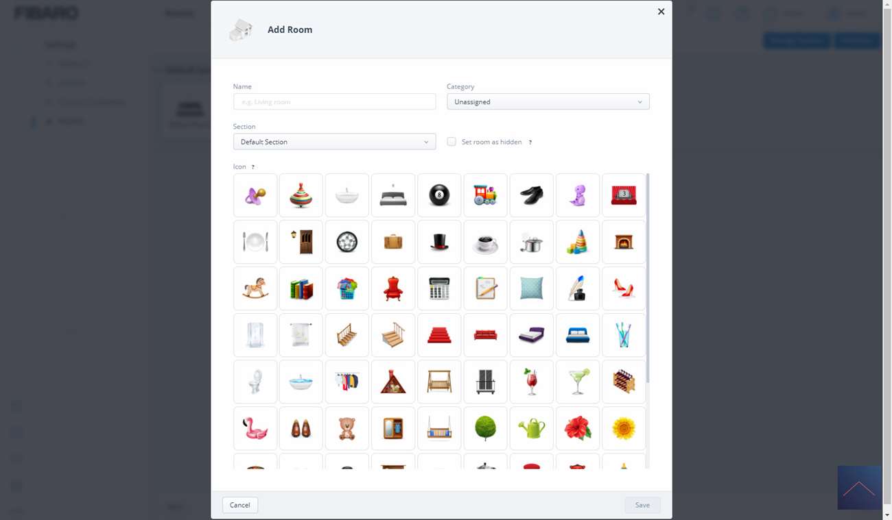 You can also attach a category to a room. This is useful for the APP. And to finish it, you can also link a section to a room. This is useful if you have a large living room, for example. Then you can say "audio corner" or "lighting corner" etc.