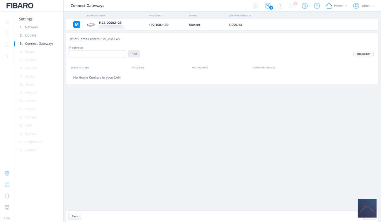 After I clicked on next, the HC3 will check if there are more gateways in my network. You can link these together to build a large network. Very nice if you have a villa. In our case this is not the case and we proceed to the next screen.
