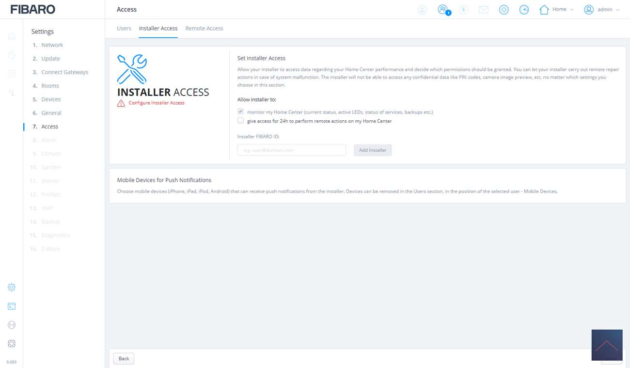 In this section you can also change the local admin password and add users. There is even an option to give an external installer temporary access.