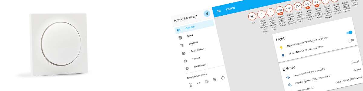 We first log in to Hass via your browser and go to your configuration. After this we go to "integrations" and press "configure" at the z-wave part. Then click on "add node secure" to start adding. Now we press the button on the switch 3 times in quick succession. The LED will flash yellow and then turn green. HASS gives a very short message that the adding has started. When I look at my devices after a while, I see it.
