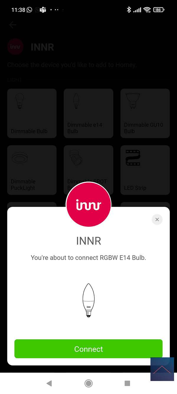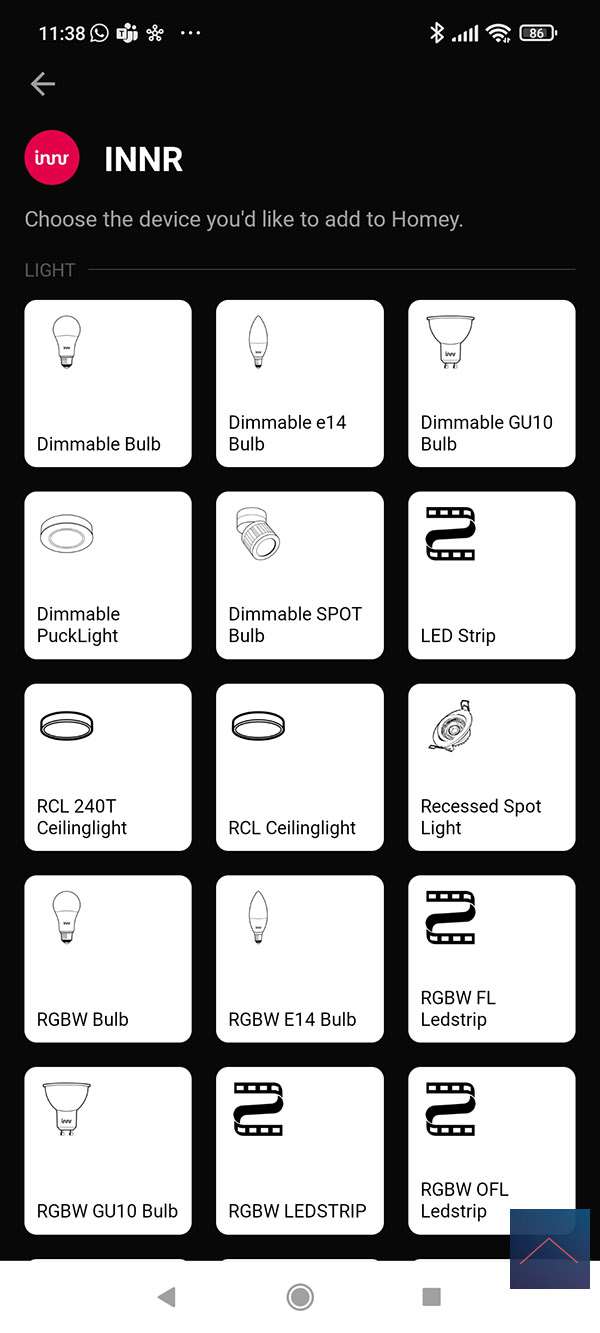 It is no surprise that this lamp works well on the INNR bridge. So we also add it to the Homey to see if it also works on a non-INNR hub. This hub has support for the Zigbee protocol and an APP is available, so adding it shouldn't cause any problems here either.