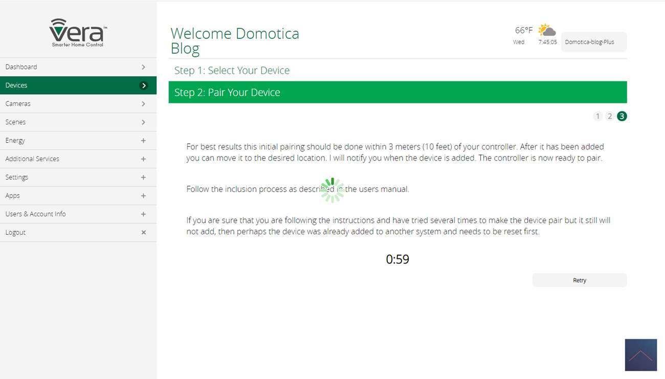 After some steps, the Vera asks to put the sensor in "learning mode". You can do this by holding down the button on the back of the sensor until the LED turns white. We release the button before the LED goes out again.