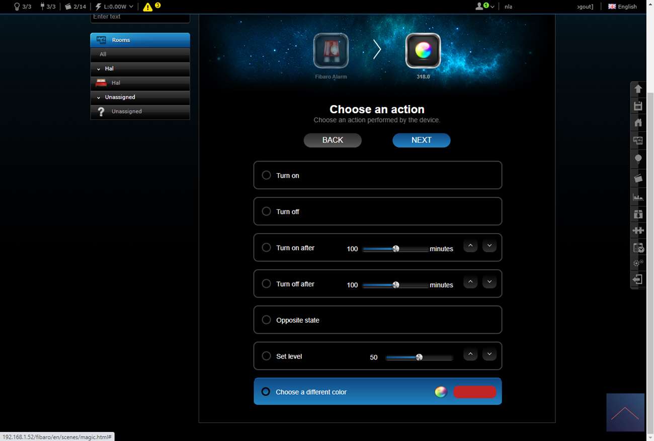 As already mentioned, this smart switch can be easily combined to create an alarm. So as an example set the Luxy to red when the alarm goes off.