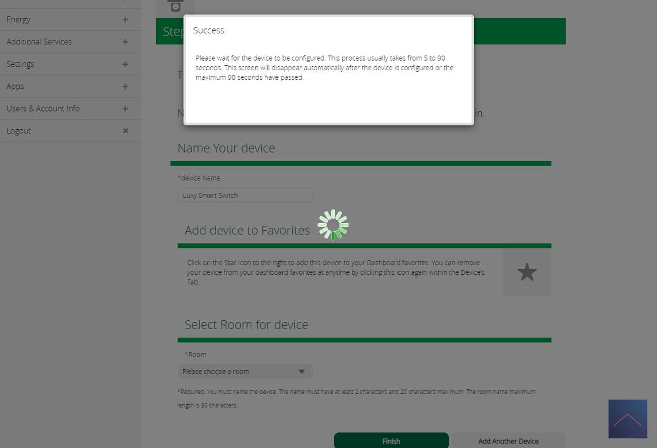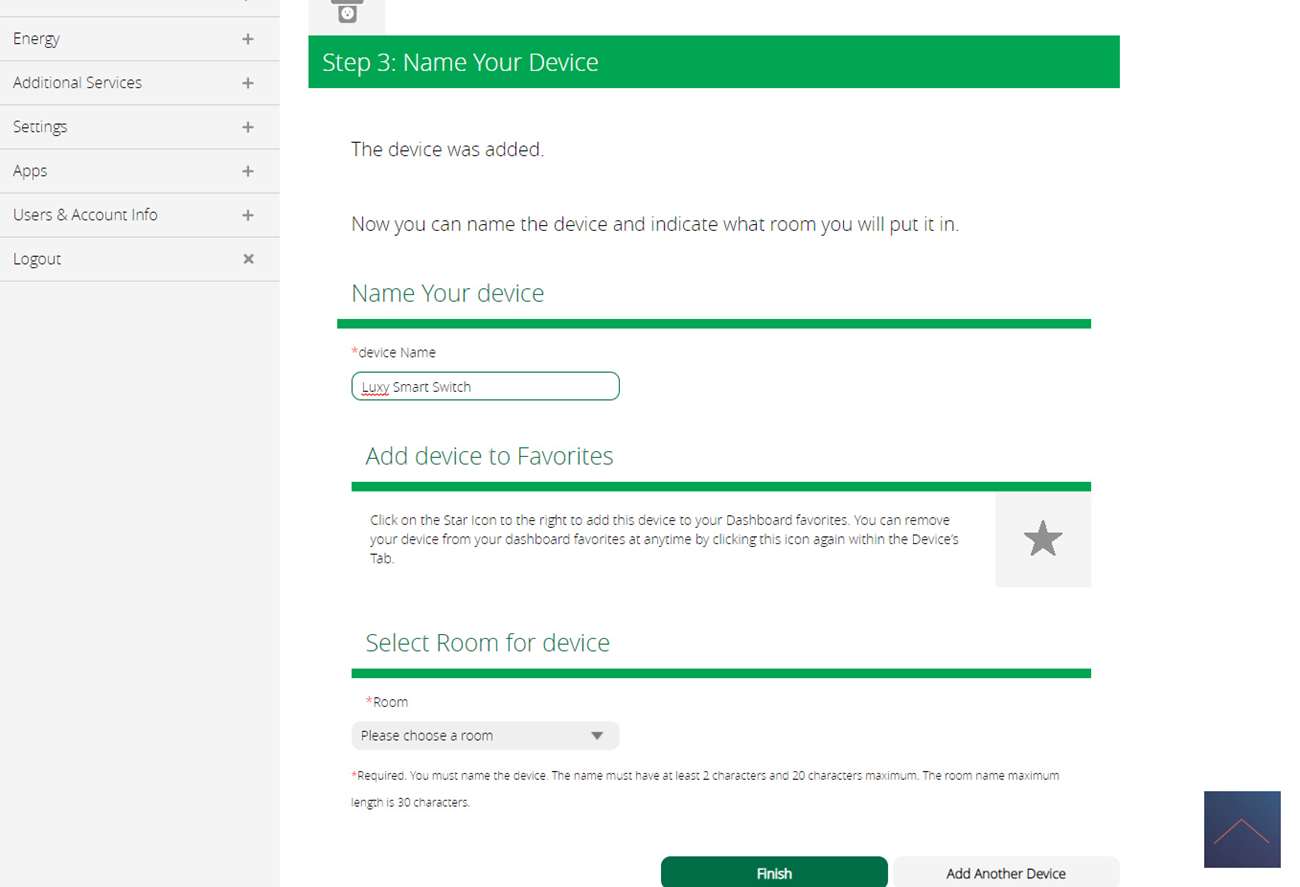 When you have connected everything, log in to the Vera and go to your devices. Then click on "add device" and search for the Luxy smart switch. Unfortunately it was not found but we can add it as "generic Z-wave device". After a few steps, the Vera asks to put the switch in the learning position. You can do this by turning on the power and pressing the right button (3) and then the bottom button (4). The LED will light up white, then press and hold the right button for 4-6 seconds. The LED will now blink green and light up green after 10 seconds.