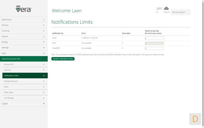 The Vera has a very extensive energy management option. For this Vera uses the services of EchoLabs. The data is therefore passed on to an external party. Personally, I am not so devastated by that. It even states that your data will become the property of EchoLabs.