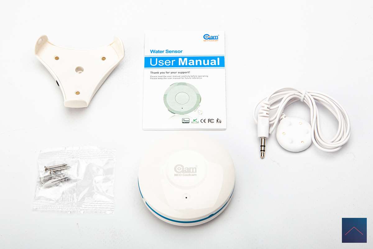 Finally, we would like to report that we use a Neo Coolcam Water sensor, but this can actually be any water sensor (such as a Zigbee variant). We chose the Neo because it has many configuration options.