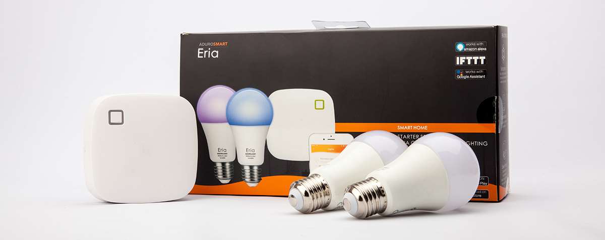 The controller can be purchased separately and they have two starter package light and security, we have the starter package light "ERIA Colors and White Start Kit A19 60W A19" and a motion sensor "ERIA Smart Motion Sensor". ERIA has a range of different lamps, a security and motion sensor and a dimmer. The starter package is available from € 89.95 and the motion sensor from € 24.95.