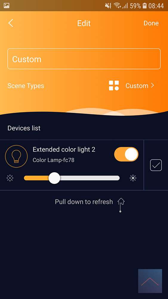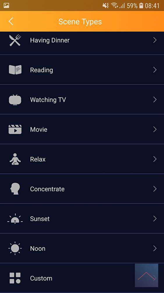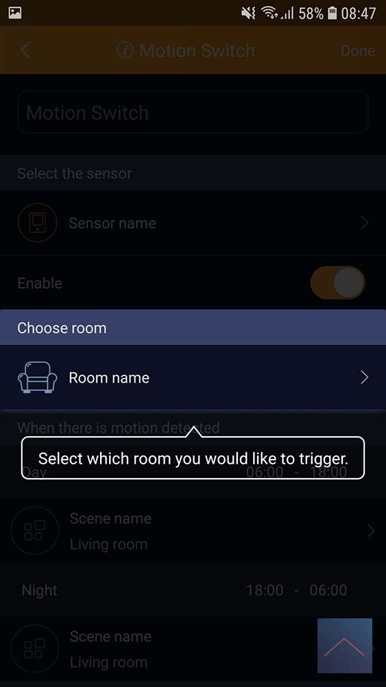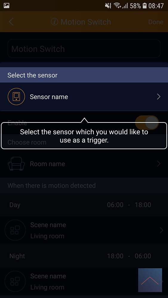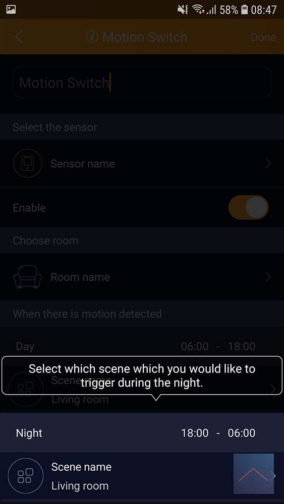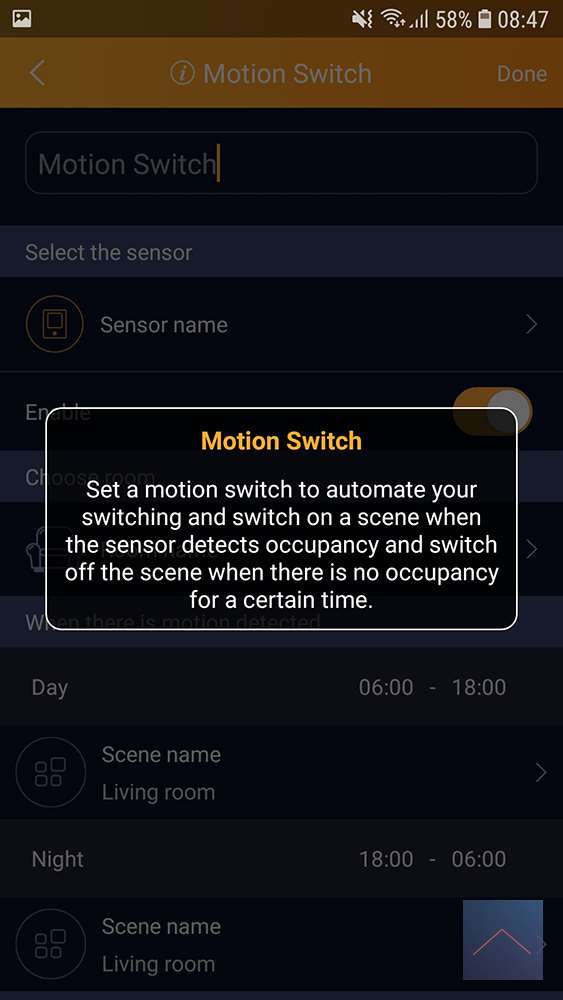 Creating scenes is different from other controllers, here you set a certain position of your lamp for example the color and/or percentage of light. At automations you can then use a scene to perform an action. In the example, we switch on the lamp when the motion sensor goes off.