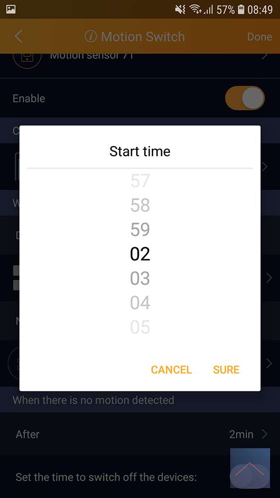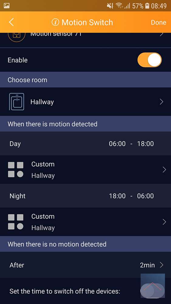 You can also choose between day and night, where the times can be adjusted. if you want you can also indicate how long you want the lamp to stay on when there is no movement anymore, the max is 59 minutes.