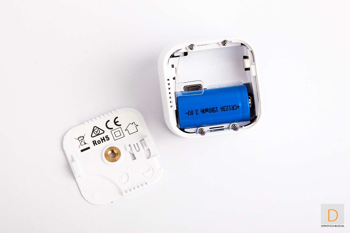 You can of course also use it via a battery (CR123a). There is even room for 2 batteries so you don't have to change as quickly. According to Aeon Labs you only have to replace the batteries after 2 years.