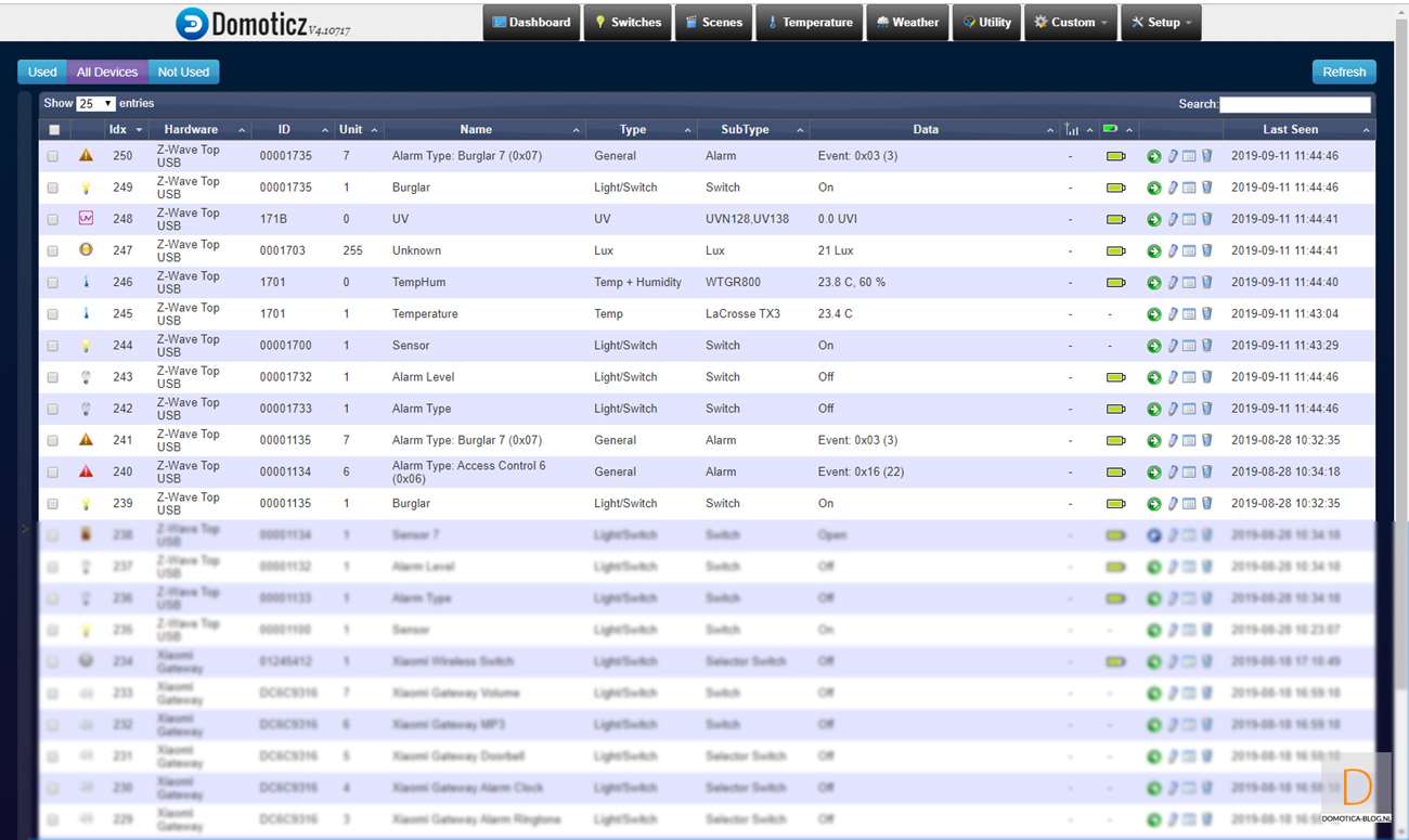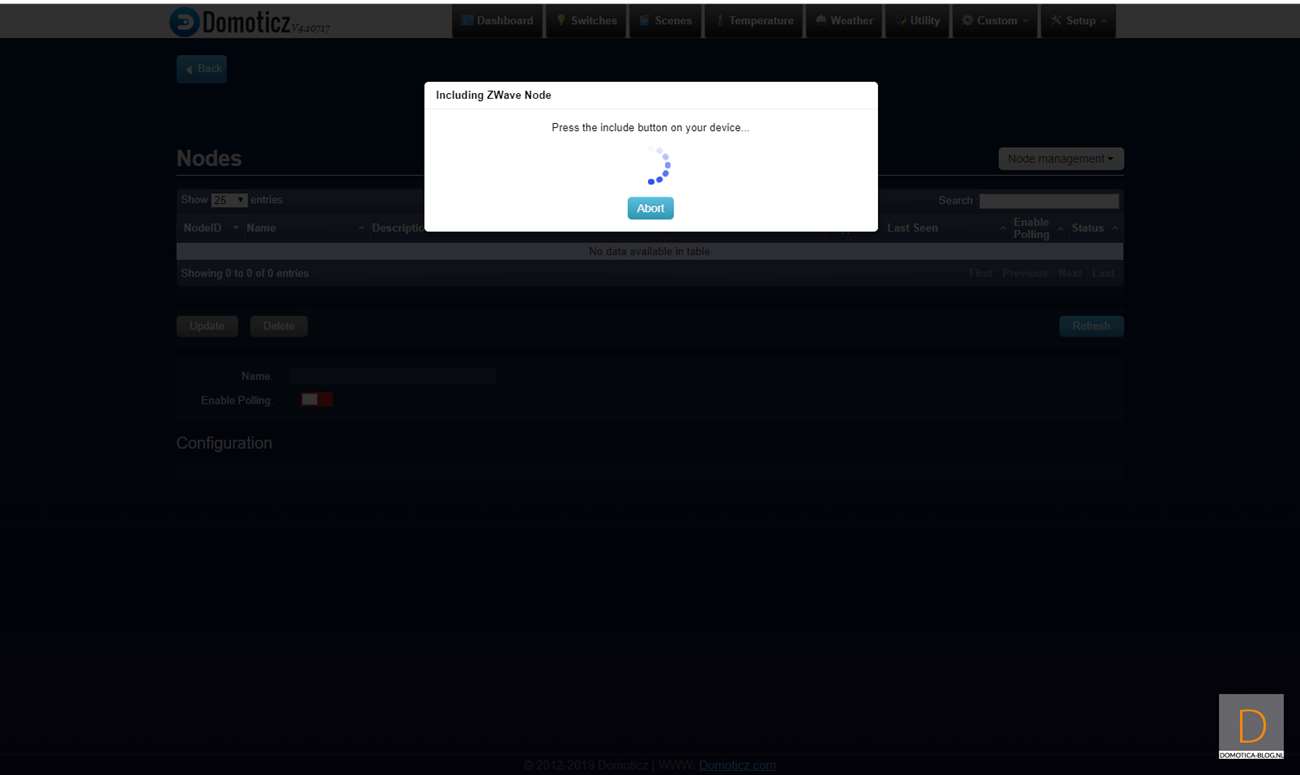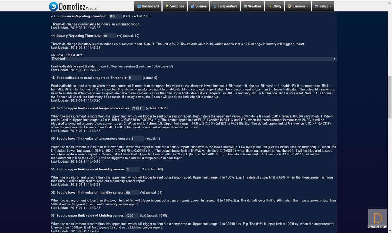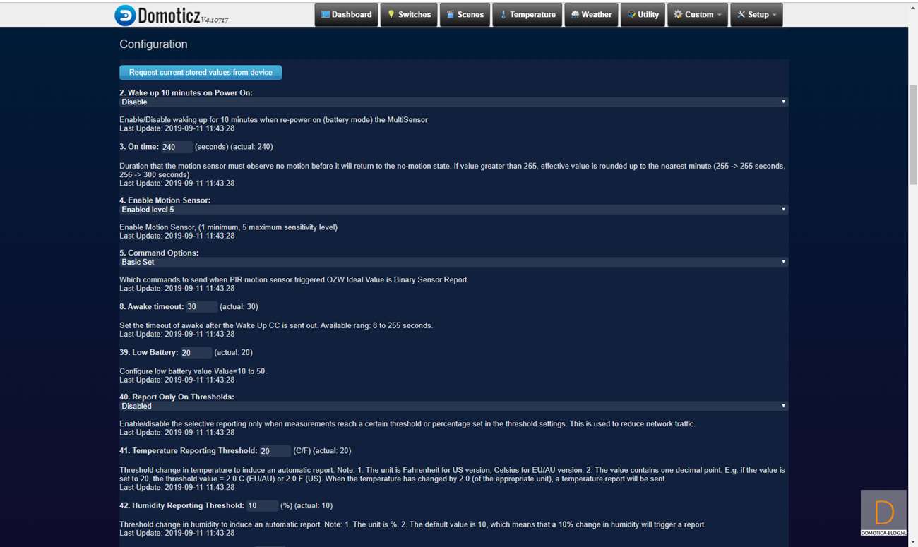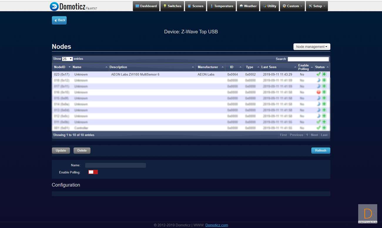 The next controller is the open source solution from Domoticz. I use this controller with an Aeotec USB Z-Wave stick so it should work without problems. First you have to determine whether you will use it via the battery or via the USB. If you use it with the battery, first remove the cover on the back of the sensor. Then remove the tab on the battery. Via the USB, first remove the battery and plug the supplied USB cable into the connection for this. Then you provide it with power. In both cases the LED on the front will change color.