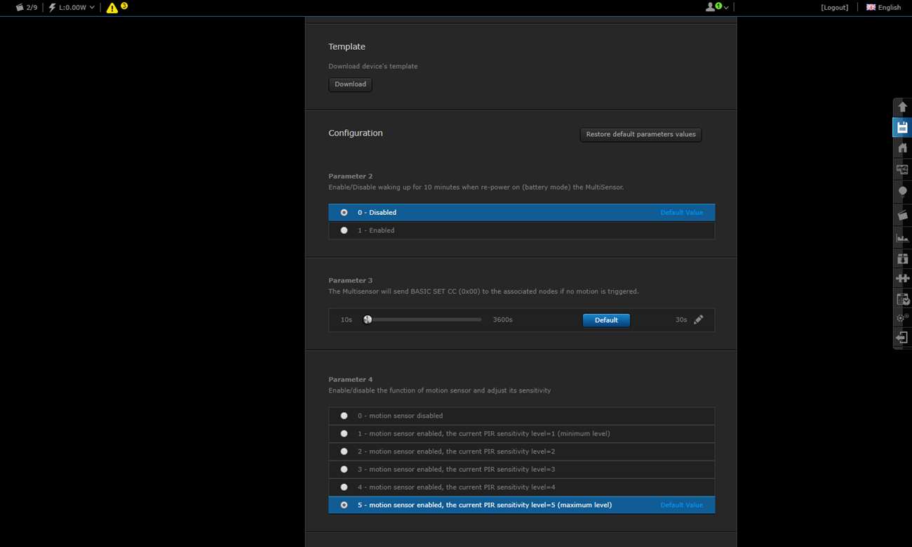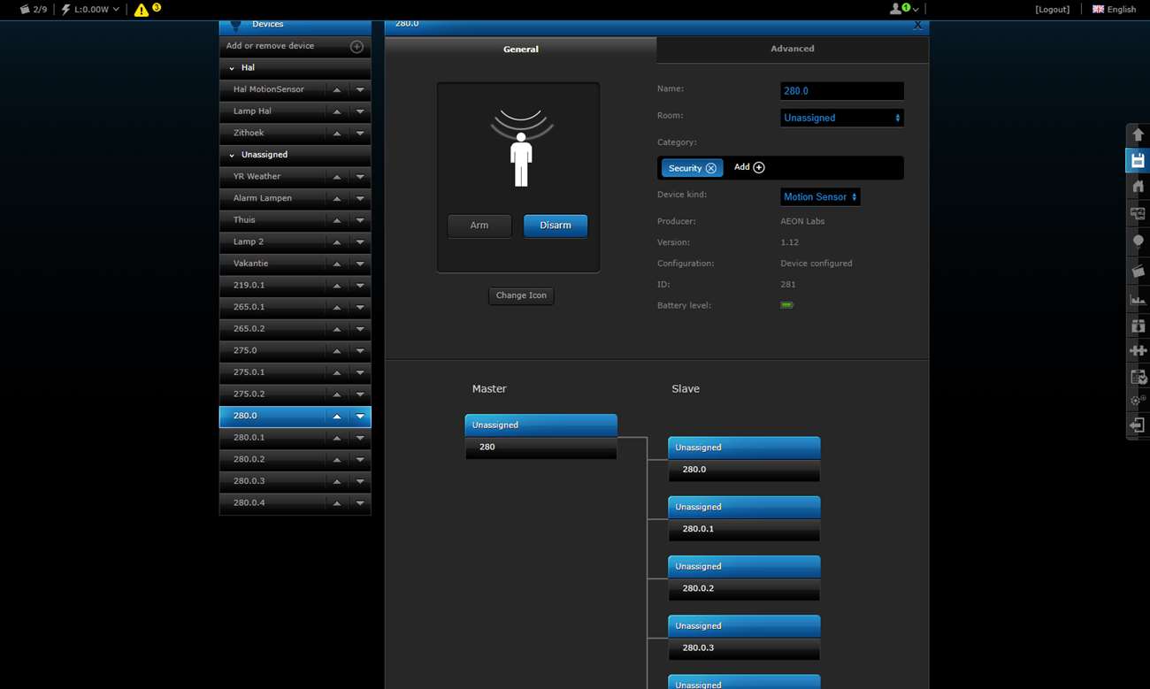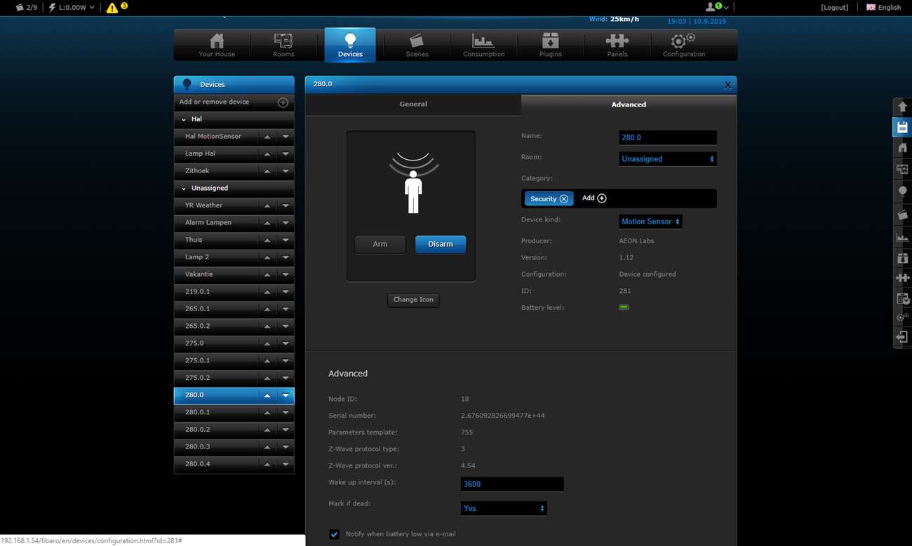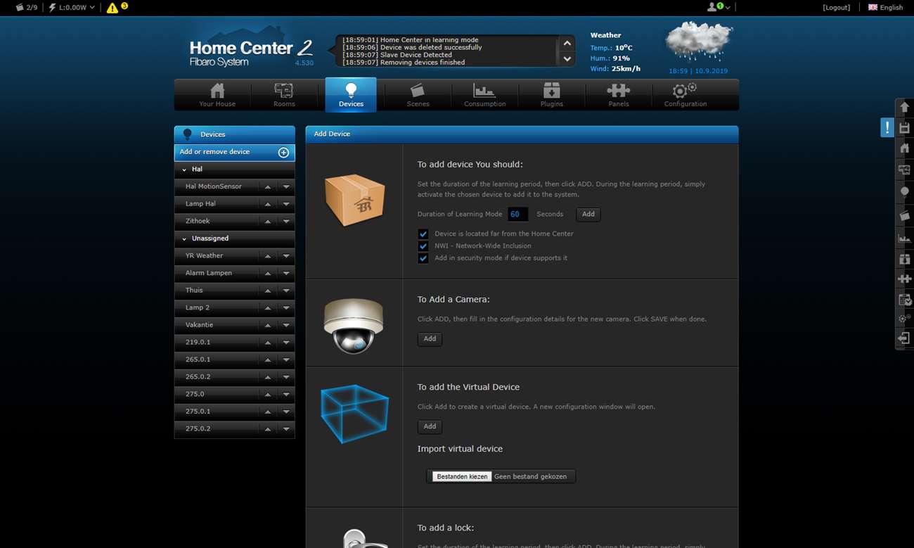 After this, log in to the HC2 and go to your devices. Then click on "add device" and press 1x on the button on the back of the sensor. The LED on the front will flash green and then yellow to indicate that the addition has started.