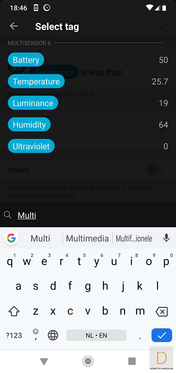 Bij mijn apparaten zie ik een bewegingssensor, lux meter, temperatuurmeter en UV meter.