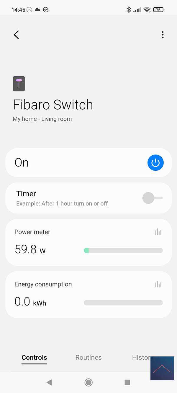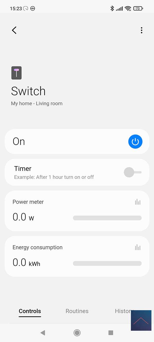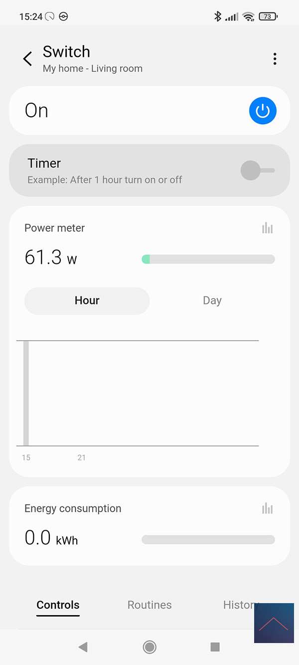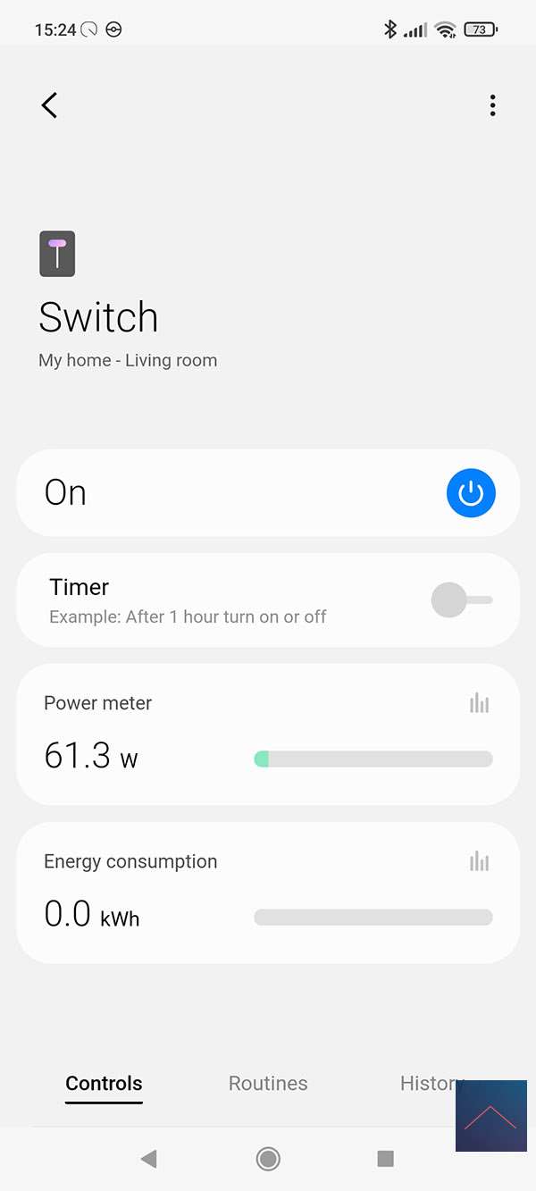 You get a switch and you can see the total consumption and current consumption. With the setting you get extra configuration options, for example to set the type of switch.