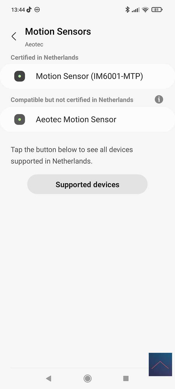 To start adding, we go to the APP and click on the plus sign at the top right of the start screen. We then press fire, Aeotec and motion sensors. We now receive a selection stating that our Multisensor has not just been certified in the Netherlands. Now we just need to unclip the back of the sensor and remove the tabs near the battery so that the sensor can get power.