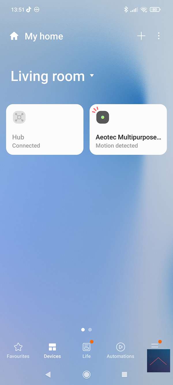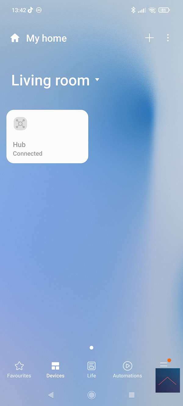 When someone walks past the sensor, it sends a signal to the hub. This registers that there is movement and you can, for example, switch on a lamp. How exactly does this work? We will deal with that in the next chapter.