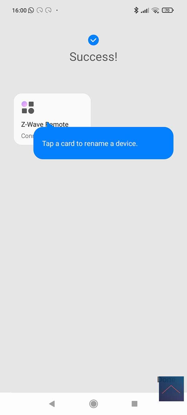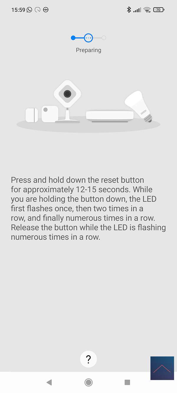 You will be asked to press and hold the button at the top for 15 seconds. The LED will flash 1x red then 2x red and will then flash several times in succession. Now is the time to release the button. After waiting about 30 seconds, we see that the sensor is added.
