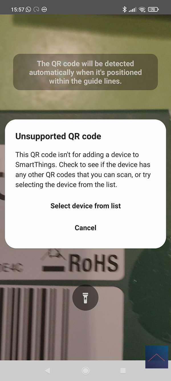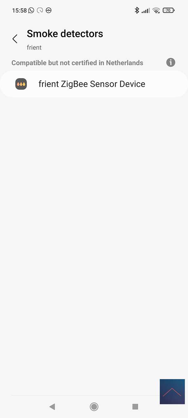 This sensor also has a code, so we scan it. Unfortunately, we get the message that the code is not recognized. So we have to add it manually by looking it up. We then select, Friend, smoke detectors and then Friend Zigbee Sensor Device.