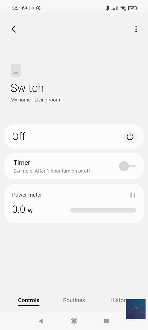We get an on and off switch and see the power consumption of the connected device. It is noticeable that we do not see the total consumption.