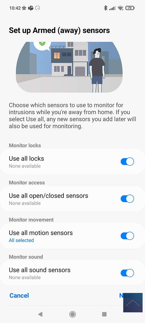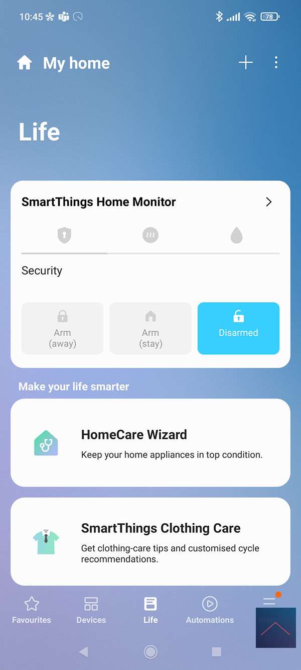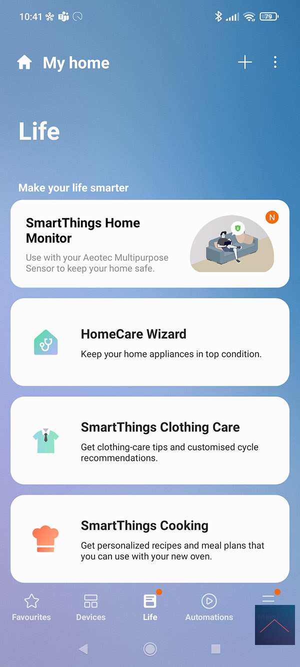 In the Life section you will find options to make your life easier. So you have to click on this directly, nonsense of course. But you will find some useful things here. For example, there is an option to keep an eye on your home. For example, you can set an alarm, different devices are used for this; eg your door lock, motion sensors and any sound sensors.