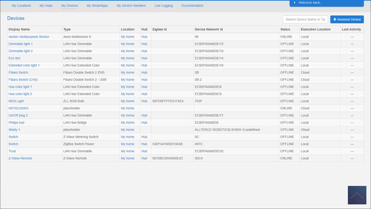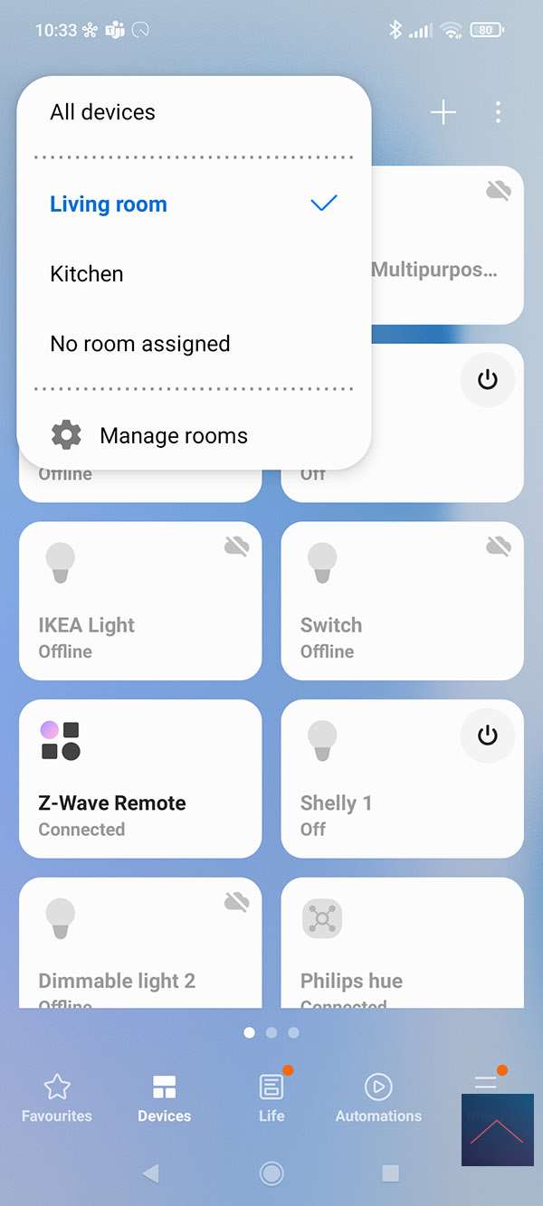 We have already seen the device screen a few times. Good to mention is that you can put devices in a room, this way you keep a good overview and you know where the device is located.