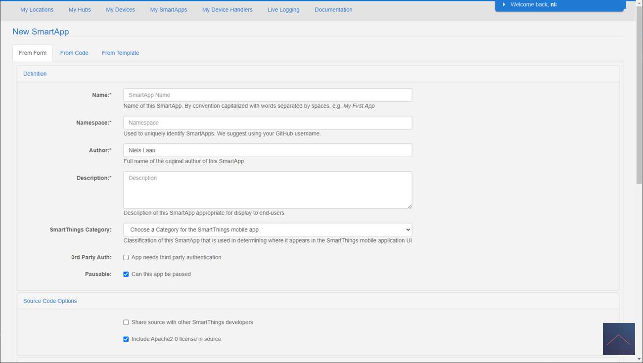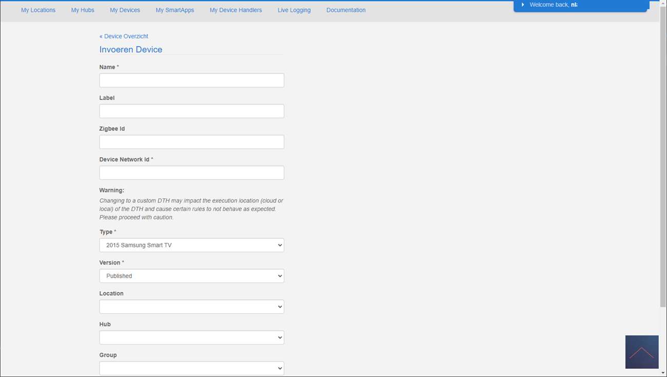 In addition to the APP, there is also a possibility to request an interface via your browser. You can reach it at: https://graph.api.smartthings.com/. In this section you will find some more extensive configuration options. For example, you can create your own device here using the "device handler", create APPs and view extensive logs.