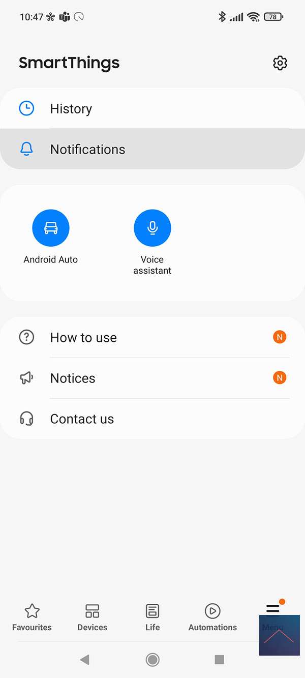 In the menu you can find some general things such as the history of all your devices (whether they are turned on/off), your notification if you missed it. You will also find a link with Android auto here, cool that this is included.