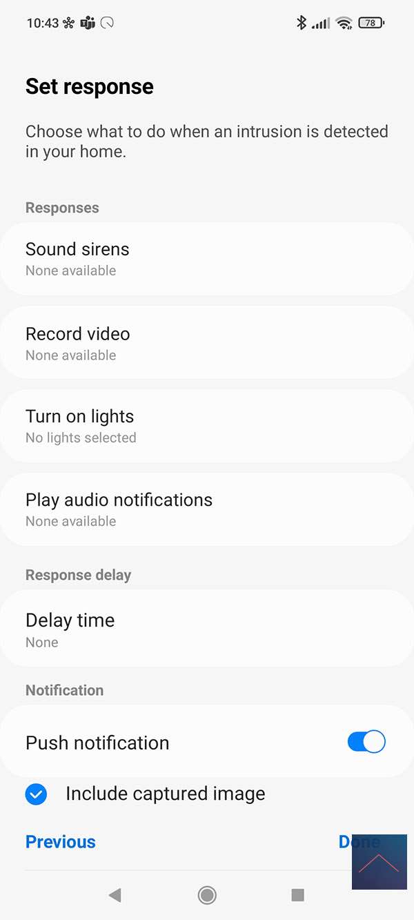 When the alarm goes off, you can, for example, turn on the camera, sound a siren or send a push notification. Handy that this is built in by default, so you don't have to figure it all out yourself via a rule. When you have completed everything, you will be given the option to turn your alarm on/off.