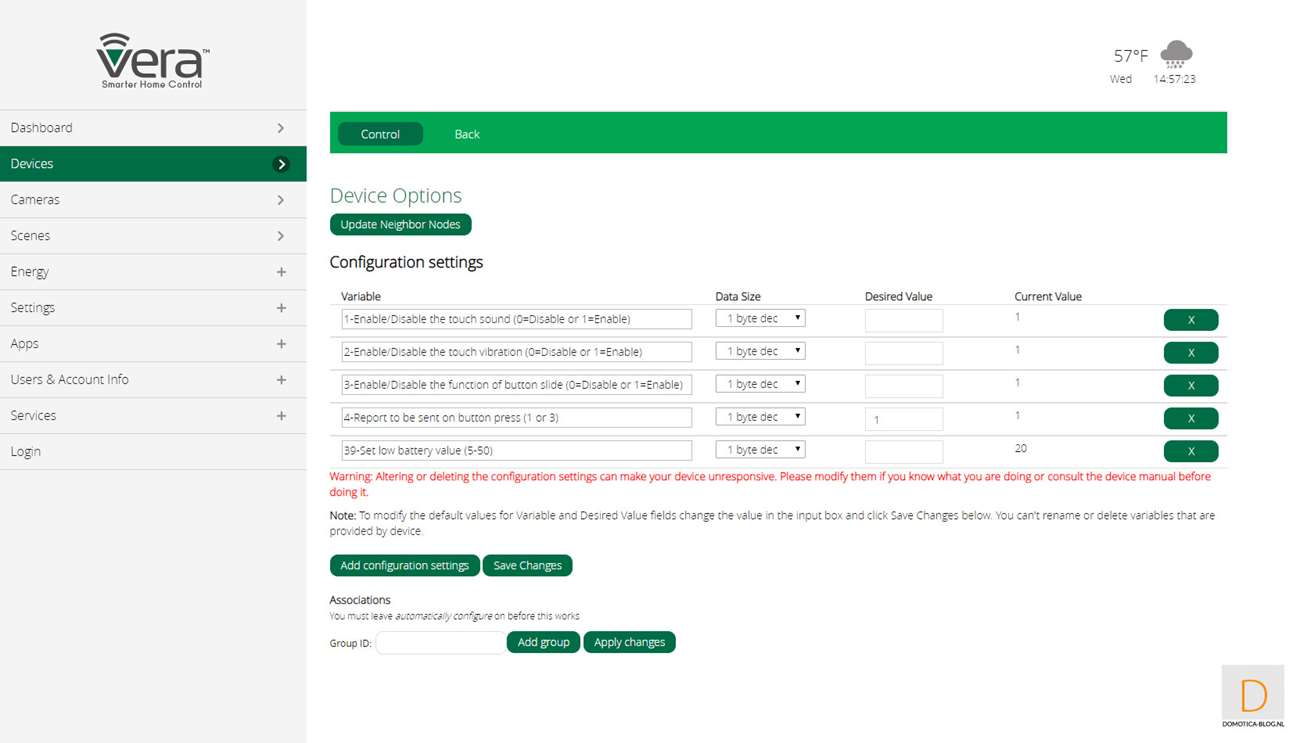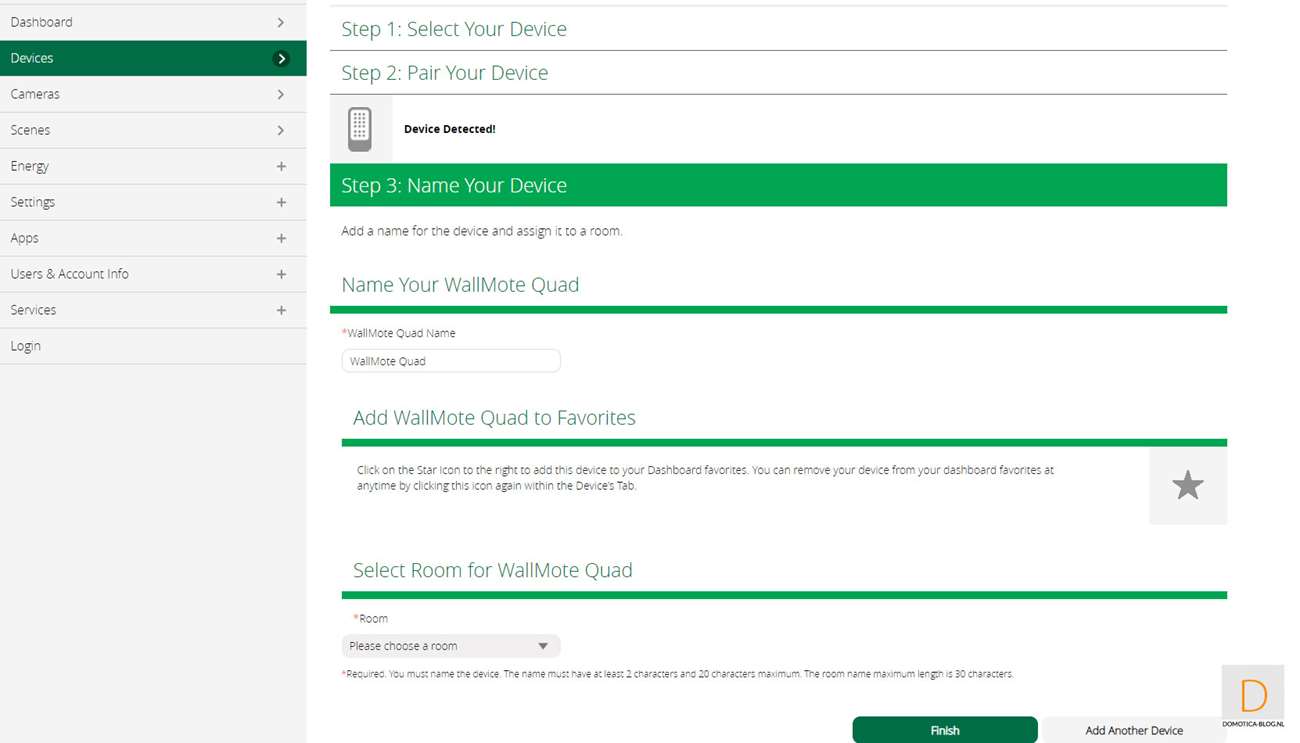As usual, we also test this Wallmote on the Vera Plus. The first step is to remove the back cover. Then I log in to the Vera and go to my devices and look for the Wallmote on it. He was suddenly found. This is quite special because this is not often the case with the Vera. It is clearly explained what to do. It was added to me immediately and I did not have to perform any additional actions. He also confirms that the addition was successful because the remote control lights up green. If this does not work, you can press the button on the backside once to start adding.