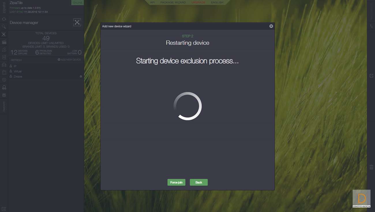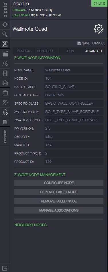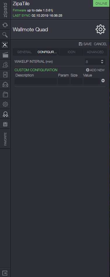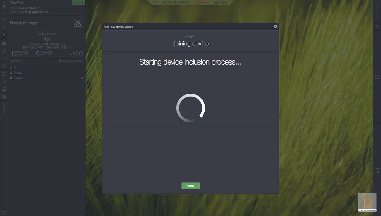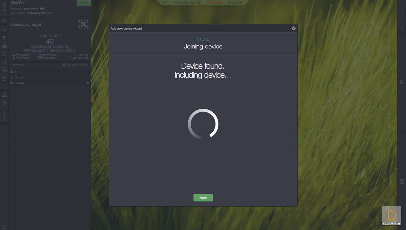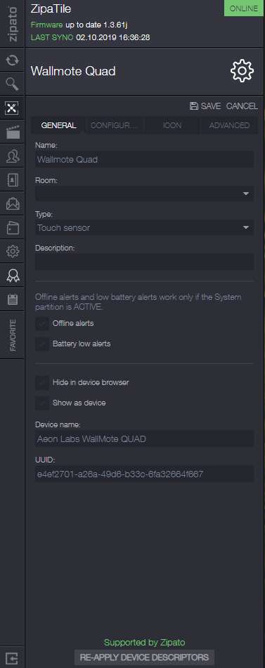 You can add it to the Zipatile by removing the back (wall plate) of the Wallmote. This will provide it with power and be put in the add mode. Then log in to the Zipatile and go to your devices. Then click on "add new device" and then on Z-wave. The Wallmote will be removed first and the LED will flash green. After this you press the button of the remote to add it. It will blink again.