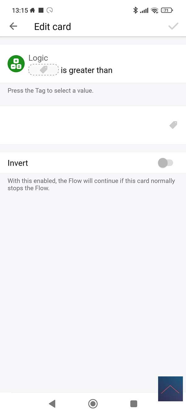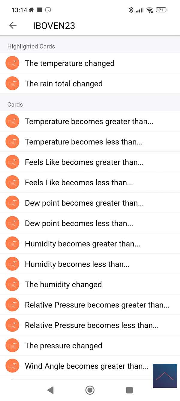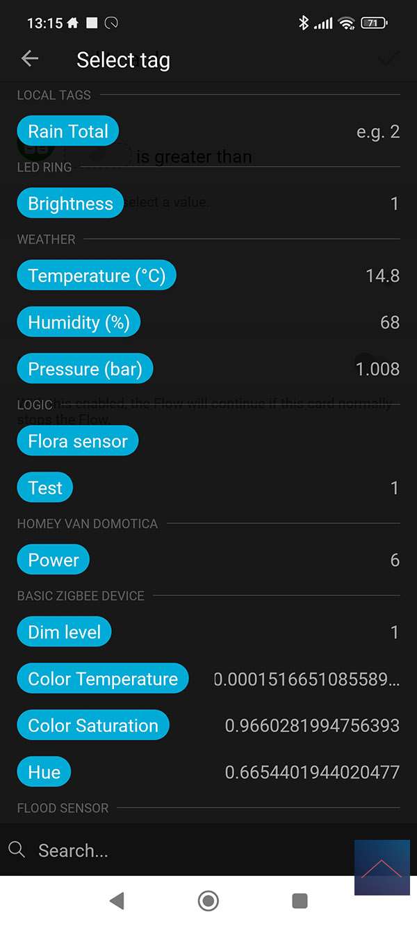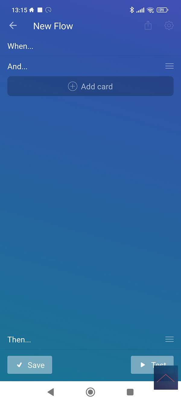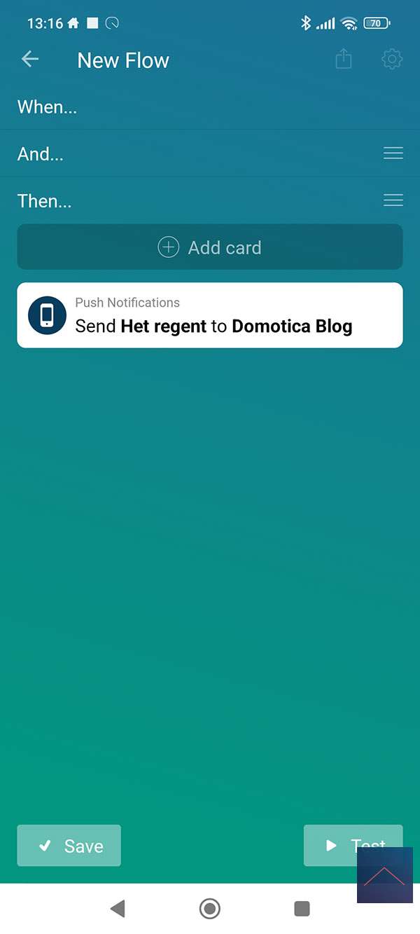 We create a flow where, if it rains, we receive a notification. For this we use the card "rain total" and determine the amount of rain and send a notification.
