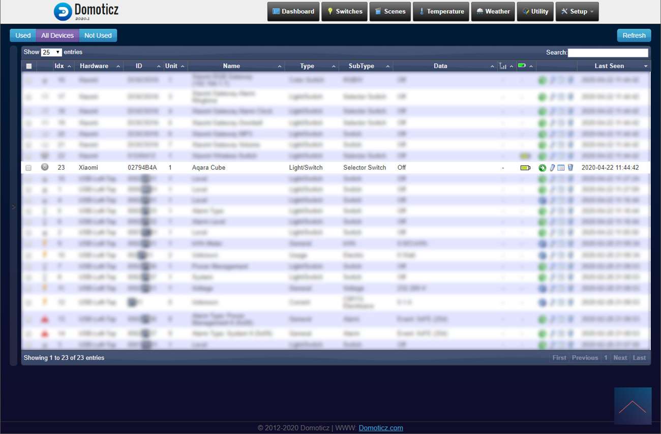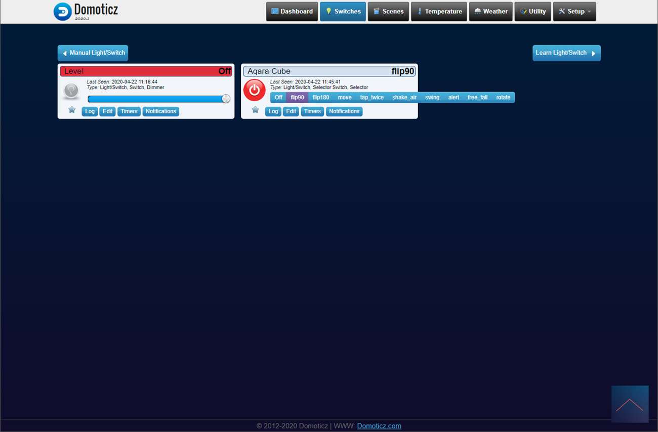 With this cube you can of course make up 1,000th scenes because there are many possibilities to start something. Unfortunately, these are a bit limited at domoticz because not all options work.