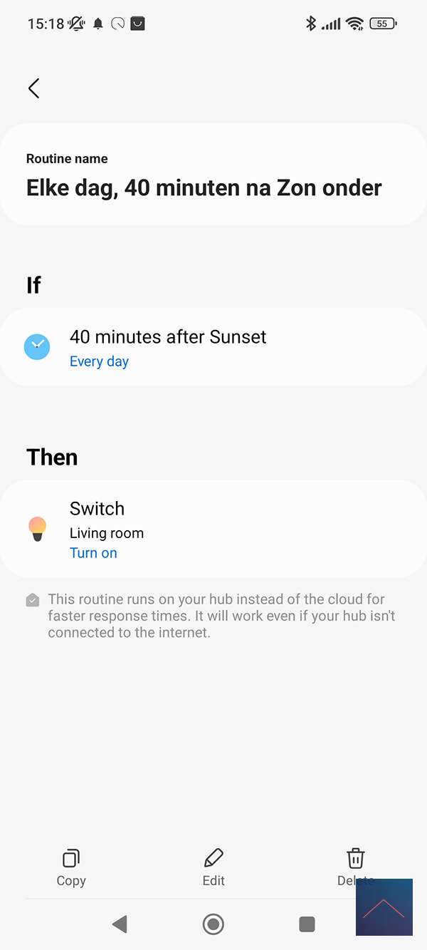 We make an automation where the plug is turned on 40 minutes before the sun goes down.