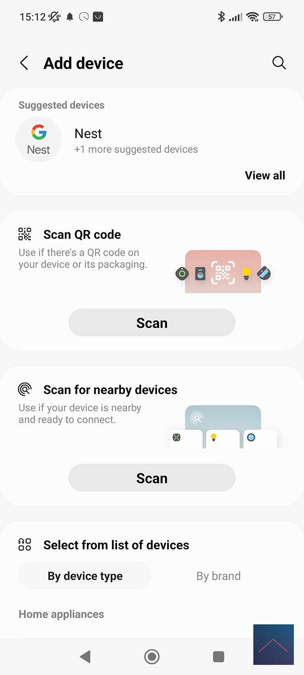 We will also add this Aqara smart plug to the Smartthings hub from Aeotec/Samsung. You can do this by going to your devices and clicking the plus sign in the top right corner. To add it we use the scan option. You can find the code on the back of the manual. Once the scan has started, supply the plug with power and hold down the button on the plug for 5 seconds until the LED starts flashing blue. After a few seconds, the plug is found as "Switch".