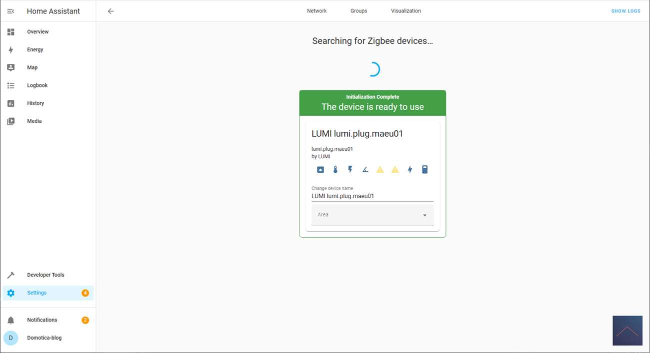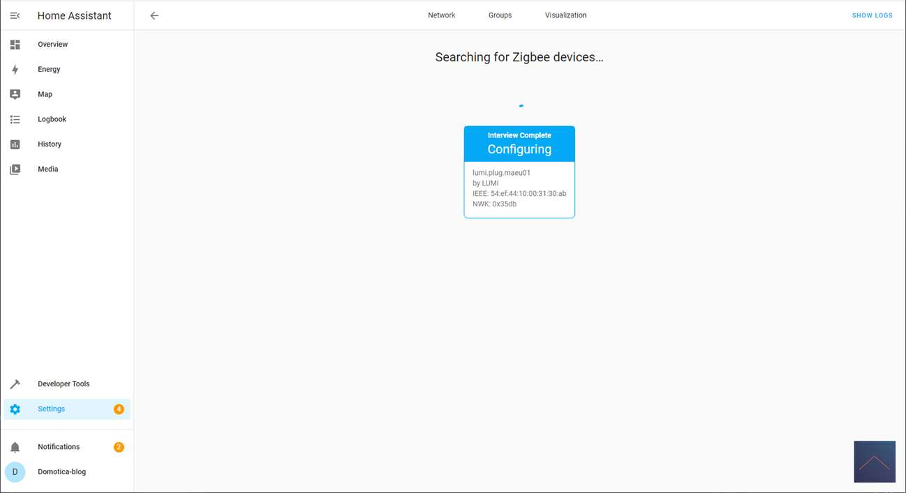 So we first have to install this stick (if you haven't already done so) on Home Assistant. It is a matter of plugging the stick into the PI and then going to the configuration/integrations. You will see him immediately. Now you have to go through a few more steps and it will be added automatically.