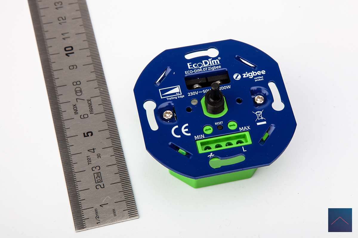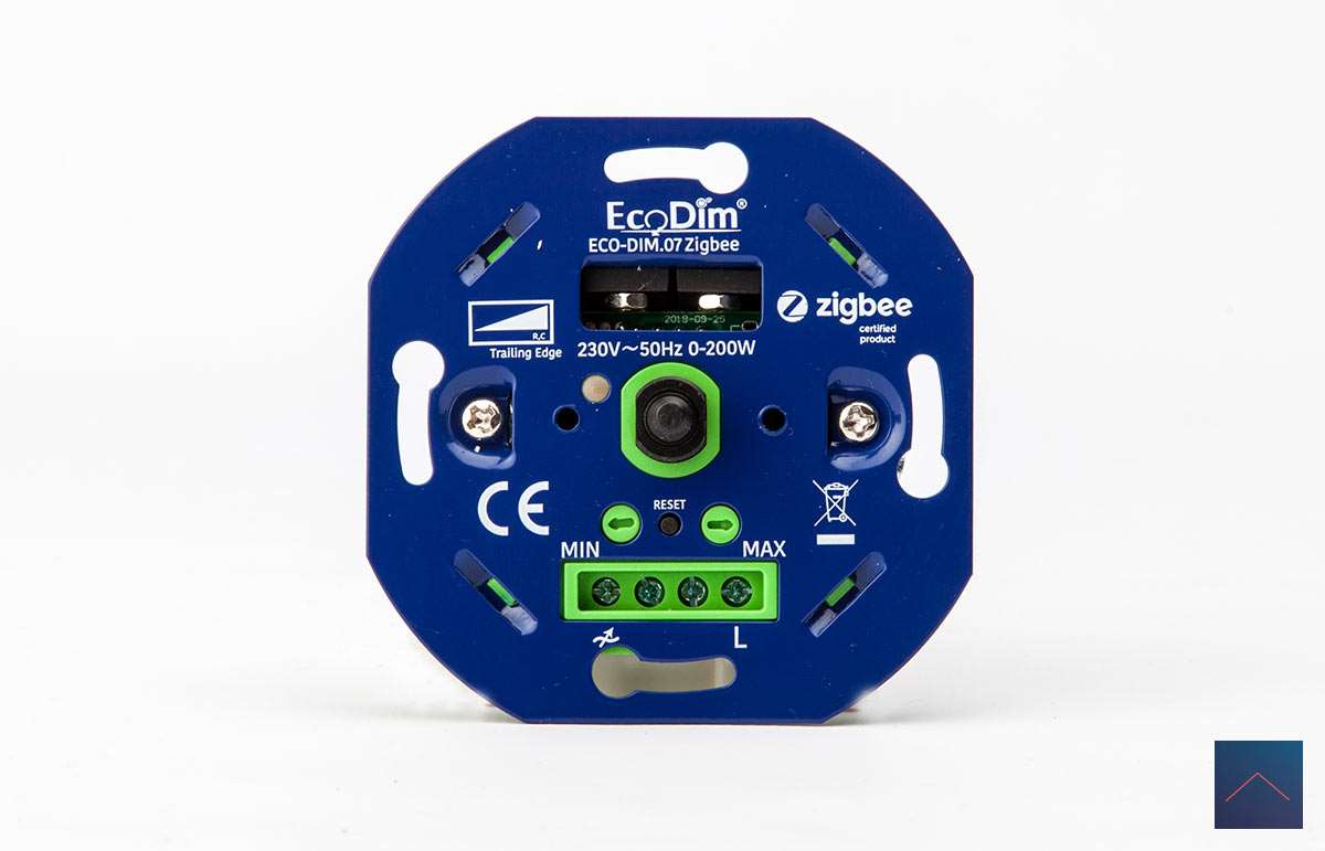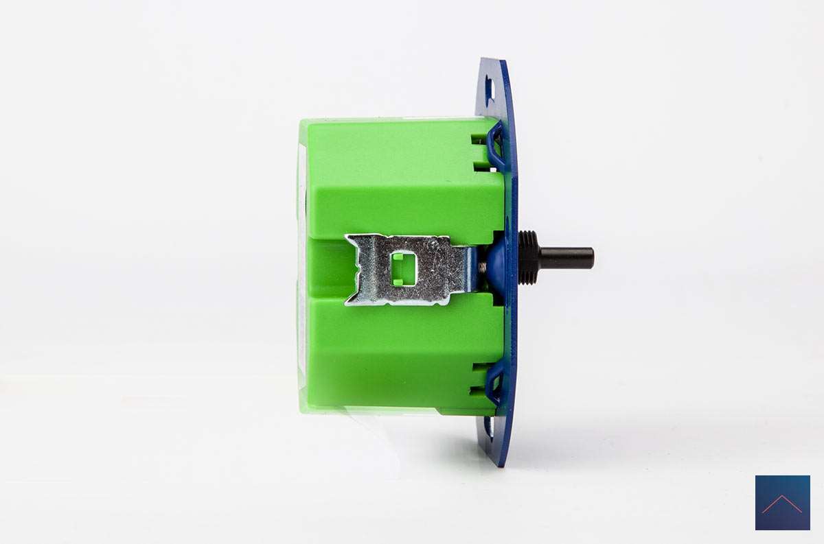 You can dim this module by means of a rotary knob. This is quite unique because most smart dimmer have to work with a pulse switch. Keep the button pressed to dim. Switching on or off is done by pressing the button.