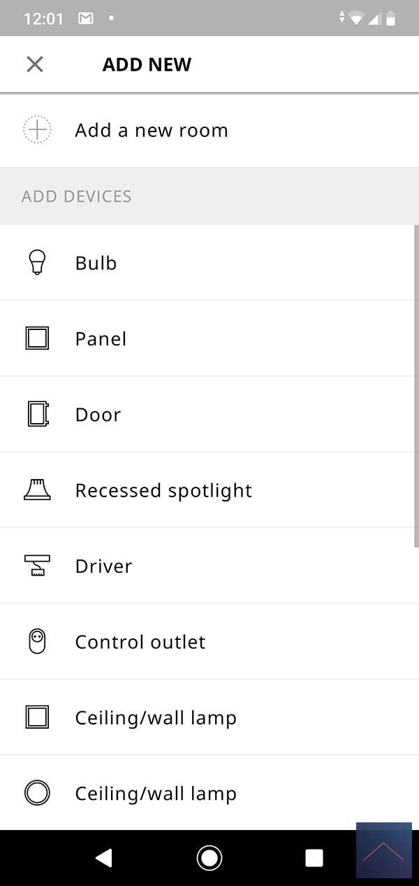 We now start the APP and go to "settings" and then to management lamps and press the plus. The dimmer cannot be directly linked to the HUB so this must be done via a remote control. We also take these.