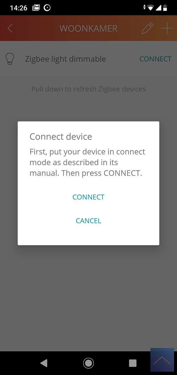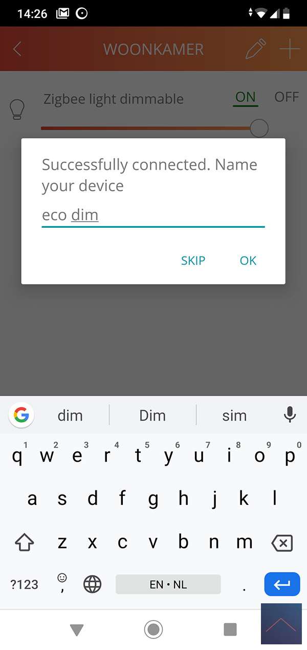Please wait a while before restoring the power. It is easier to start the APP first and start adding a new lamp. You can add this by first going to a room and then pressing the plus at the top right. You then select "other brands" and "Zigbee lamp dimmable". Now is the time to power the Eco-DIM so we have to go to the meter cupboard!