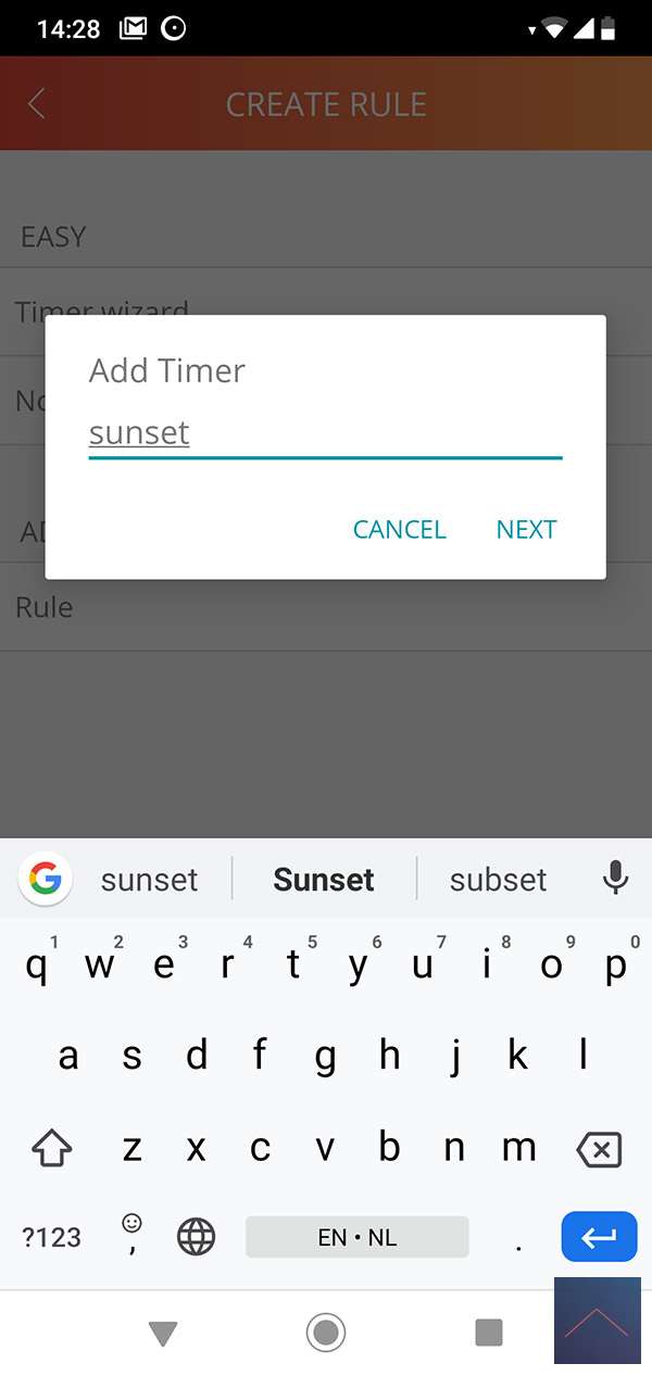 We ensure that the Eco-DIM is switched on when the sun goes down and that it also switches off automatically when the sun goes down. To do this easily, we use the timer wizard.