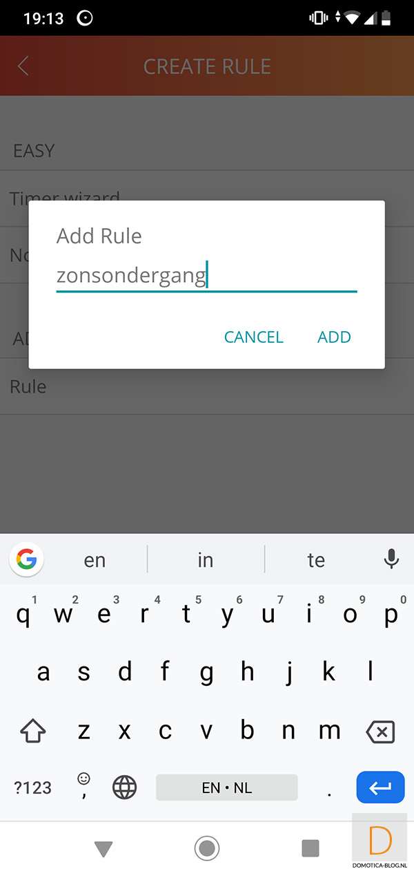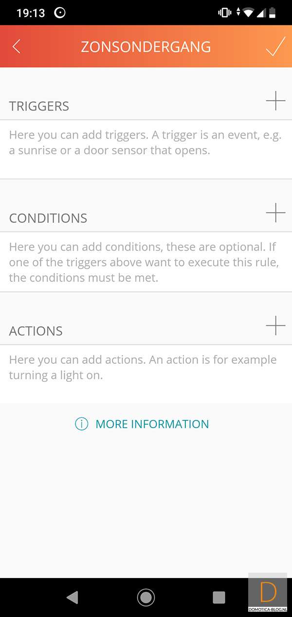 For the example rule I want to show that when the sun goes down, the Eco-DIM is switched on. You can arrange this with the "rule" part. See the screens below.